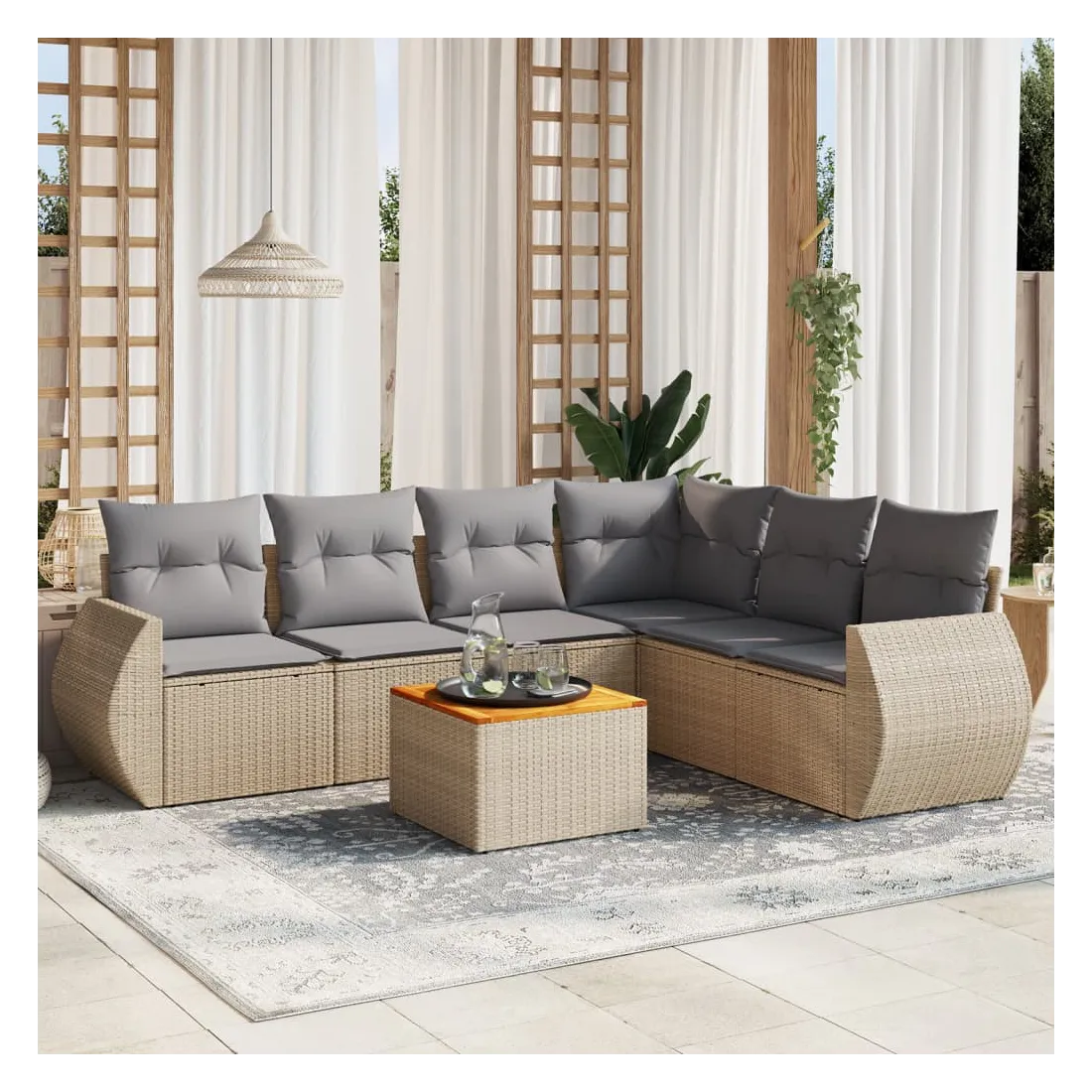 Salon de jardin avec coussins 7 pcs beige résine tressée