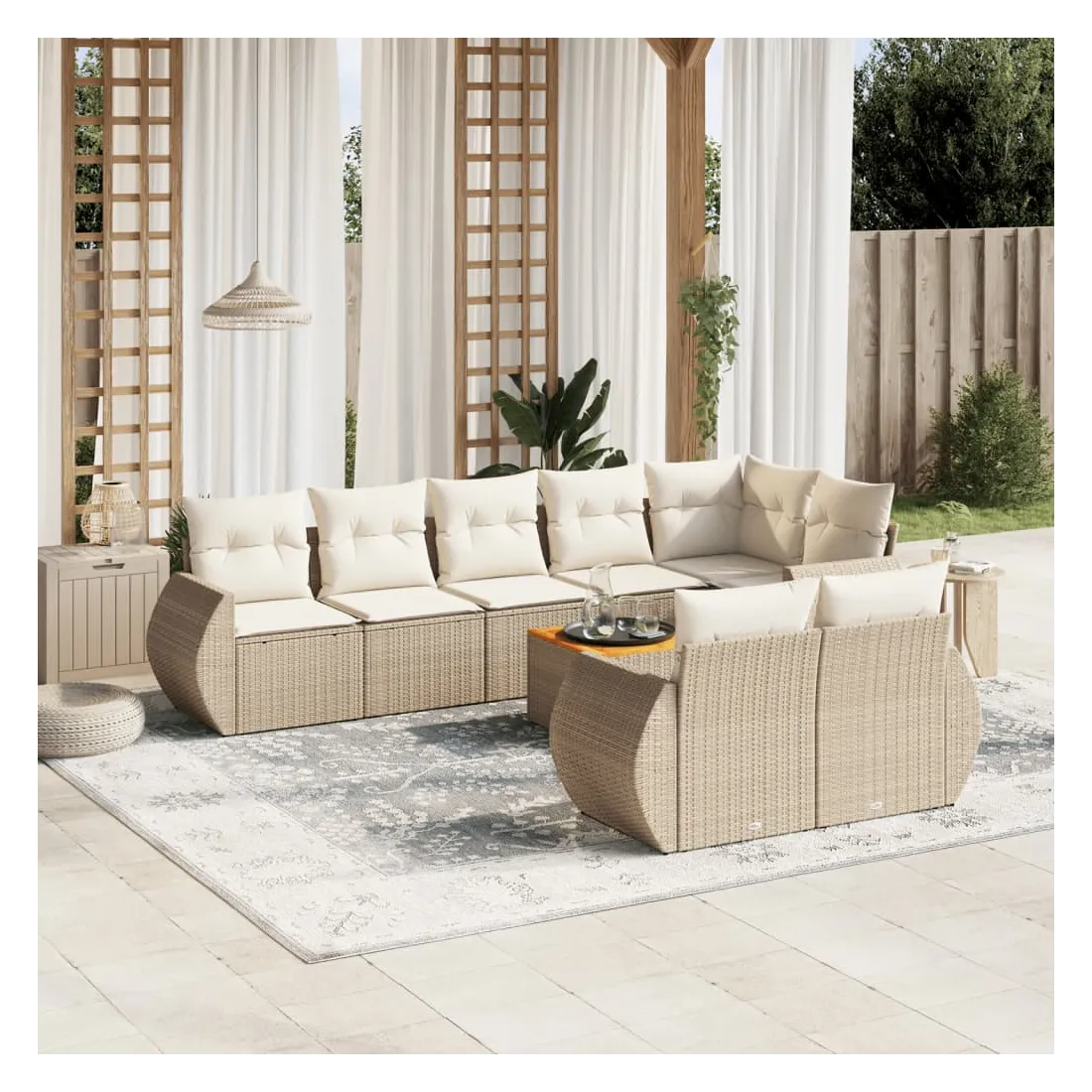 Cet ensemble de canapés de jardin est le complément parfait de votre arrière-cour, terrasse ou patio, offrant un espace confortable et accueillant pour discuter avec la famille et les amis ou simplement se détendre et profiter de l'extérieur. Matériau durable : la résine tressée, également connue sous le nom de poly rotin, est un matériau synthétique solide et nécessitant peu d'entretien qui ressemble au rotin naturel. Il est léger, facile à nettoyer et couramment utilisé pour les meubles d'extérieur en raison de sa durabilité et de ses propriétés de résistance aux intempéries.Dessus stable et facile à nettoyer : cette table de jardin a un dessus en bois d'acacia robuste, durable et facile à nettoyer avec un chiffon humide. Expérience d'assise confortable : ce mobilier d'extérieur, doté de coussins épais, offre une expérience d'assise confortable.Housse amovible et lavable : ces coussins de siège sont dotés de housses amovibles pour un lavage et un entretien faciles.Conception modulaire : cet ensemble de meubles d'extérieur a une conception modulaire, ce qui le rend complètement flexible et facile à déplacer, afin que vous puissiez créer un agencement de meubles d'extérieur personnalisé. Bon à savoir :Pour que vos meubles d'extérieur restent beaux, nous vous recommandons de les protéger avec une housse imperméable.