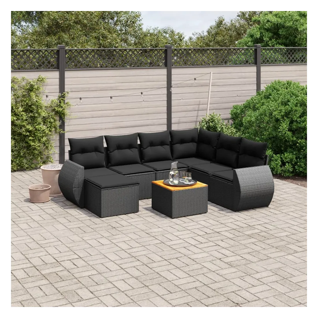 Cet ensemble de canapés de jardin est le complément parfait de votre arrière-cour, terrasse ou patio, offrant un espace confortable et accueillant pour discuter avec la famille et les amis ou simplement se détendre et profiter de l'extérieur. Matériau durable : la résine tressée, également connue sous le nom de poly rotin, est un matériau synthétique solide et nécessitant peu d'entretien qui ressemble au rotin naturel. Il est léger, facile à nettoyer et couramment utilisé pour les meubles d'extérieur en raison de sa durabilité et de ses propriétés de résistance aux intempéries.Dessus stable et facile à nettoyer : cette table de jardin a un dessus en bois d'acacia robuste, durable et facile à nettoyer avec un chiffon humide. Expérience d'assise confortable : ce mobilier d'extérieur, doté de coussins épais, offre une expérience d'assise confortable.Housse amovible et lavable : ces coussins de siège sont dotés de housses amovibles pour un lavage et un entretien faciles.Conception modulaire : cet ensemble de meubles d'extérieur a une conception modulaire, ce qui le rend complètement flexible et facile à déplacer, afin que vous puissiez créer un agencement de meubles d'extérieur personnalisé. Bon à savoir :Pour que vos meubles d'extérieur restent beaux, nous vous recommandons de les protéger avec une housse imperméable.