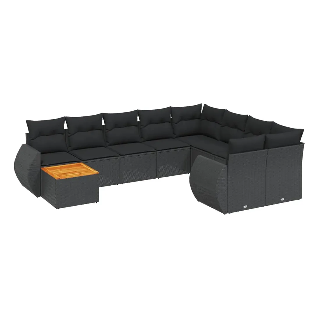 Salon de jardin 10 pcs avec coussins noir résine tressée