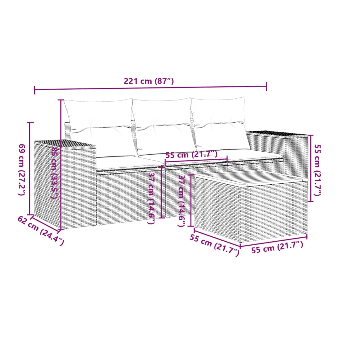 - Dimensions : 55 x 55 x 37 cm (L x l x H)