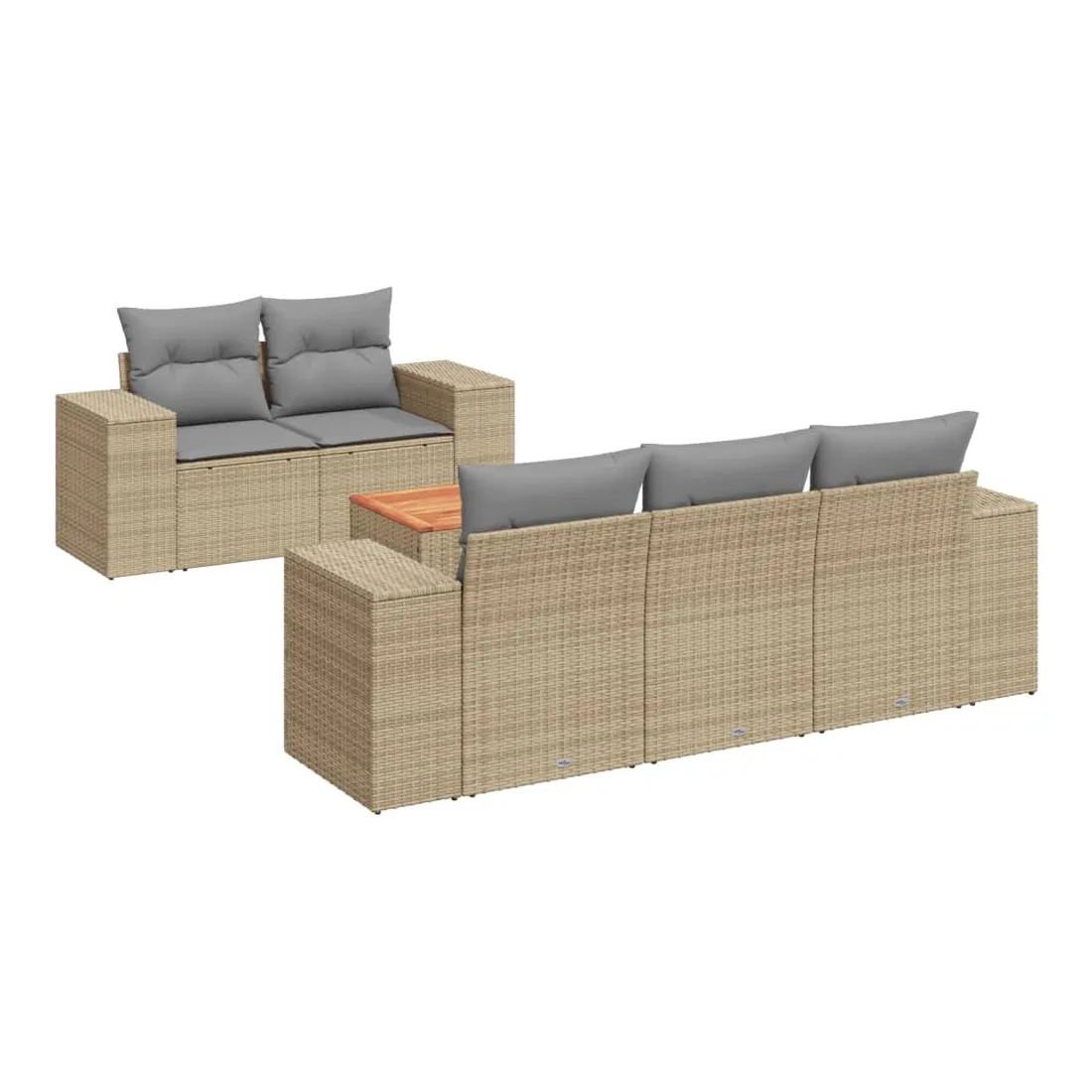 Cet ensemble de canapés de jardin est le complément parfait de votre arrière-cour, terrasse ou patio, offrant un espace confortable et accueillant pour discuter avec la famille et les amis ou simplement se détendre et profiter de l'extérieur. Matériau durable : la résine tressée, également connue sous le nom de poly rotin, est un matériau synthétique solide et nécessitant peu d'entretien qui ressemble au rotin naturel. Il est léger, facile à nettoyer et couramment utilisé pour les meubles d'extérieur en raison de sa durabilité et de ses propriétés de résistance aux intempéries.Dessus stable et facile à nettoyer : cette table de jardin a un dessus en bois d'acacia robuste, durable et facile à nettoyer avec un chiffon humide. Expérience d'assise confortable : ce mobilier d'extérieur, doté de coussins épais, offre une expérience d'assise confortable. Housse amovible et lavable : ces coussins de siège sont dotés de housses amovibles pour un lavage et un entretien faciles.Conception modulaire : cet ensemble de meubles d'extérieur a une conception modulaire, ce qui le rend complètement flexible et facile à déplacer, afin que vous puissiez créer un agencement de meubles d'extérieur personnalisé. Bon à savoir :Pour que vos meubles d'extérieur restent beaux, nous vous recommandons de les protéger avec une housse imperméable.