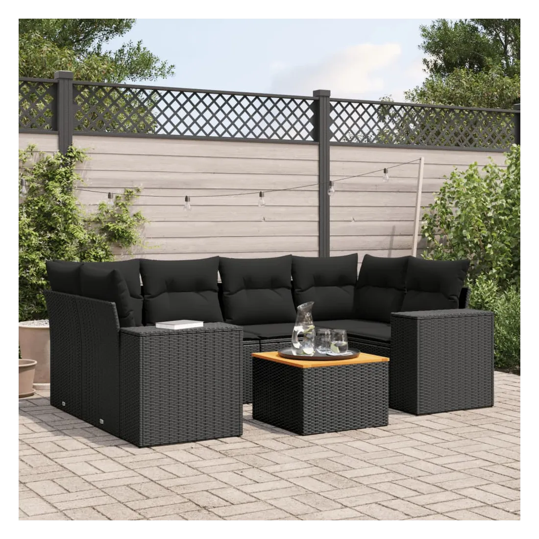 Cet ensemble de canapés de jardin est le complément parfait de votre arrière-cour, terrasse ou patio, offrant un espace confortable et accueillant pour discuter avec la famille et les amis ou simplement se détendre et profiter de l'extérieur. Matériau durable : la résine tressée, également connue sous le nom de poly rotin, est un matériau synthétique solide et nécessitant peu d'entretien qui ressemble au rotin naturel. Il est léger, facile à nettoyer et couramment utilisé pour les meubles d'extérieur en raison de sa durabilité et de ses propriétés de résistance aux intempéries.Dessus stable et facile à nettoyer : cette table de jardin a un dessus en bois d'acacia robuste, durable et facile à nettoyer avec un chiffon humide. Expérience d'assise confortable : ce mobilier d'extérieur, doté de coussins épais, offre une expérience d'assise confortable.Housse amovible et lavable : ces coussins de siège sont dotés de housses amovibles pour un lavage et un entretien faciles.Conception modulaire : cet ensemble de meubles d'extérieur a une conception modulaire, ce qui le rend complètement flexible et facile à déplacer, afin que vous puissiez créer un agencement de meubles d'extérieur personnalisé. Bon à savoir :Pour que vos meubles d'extérieur restent beaux, nous vous recommandons de les protéger avec une housse imperméable.