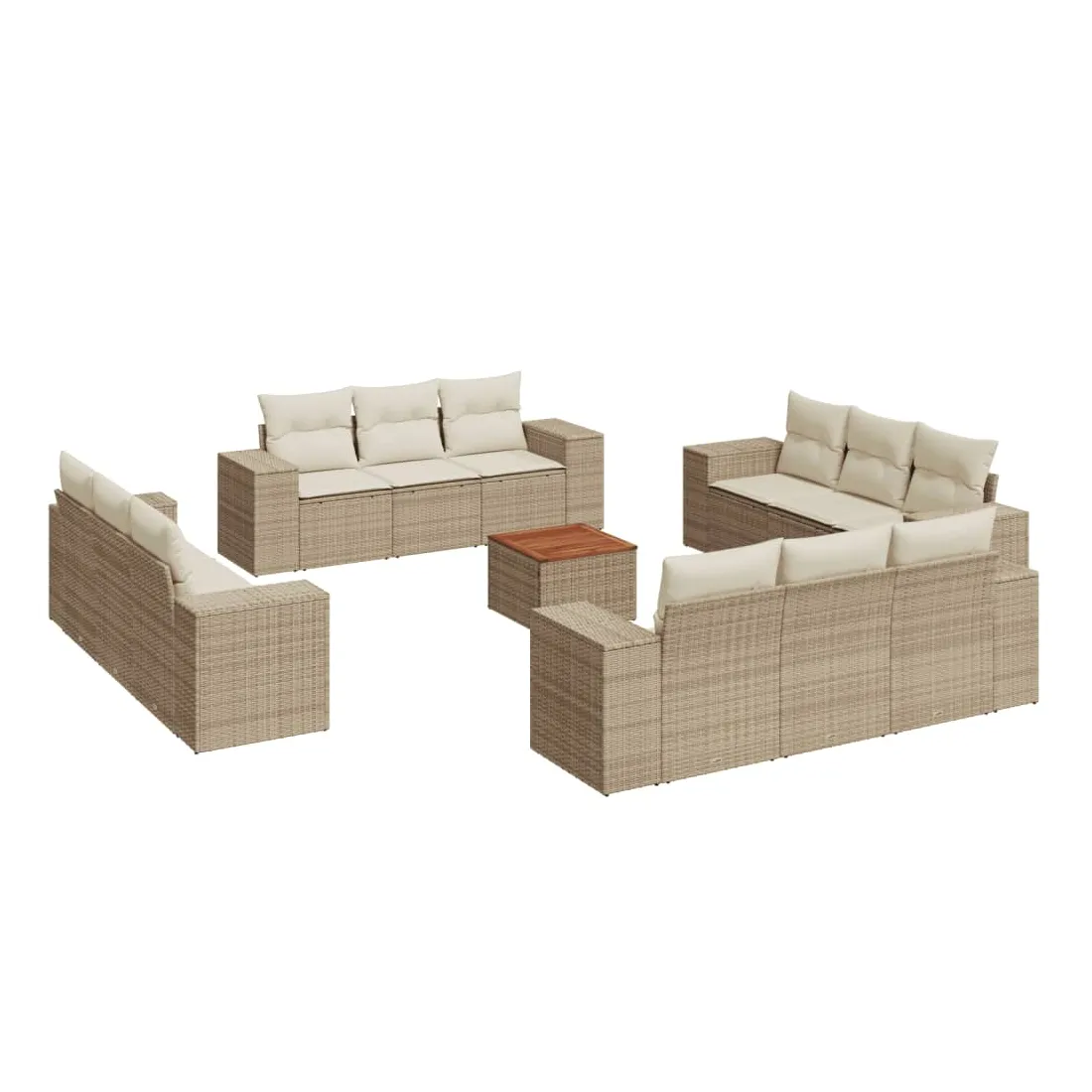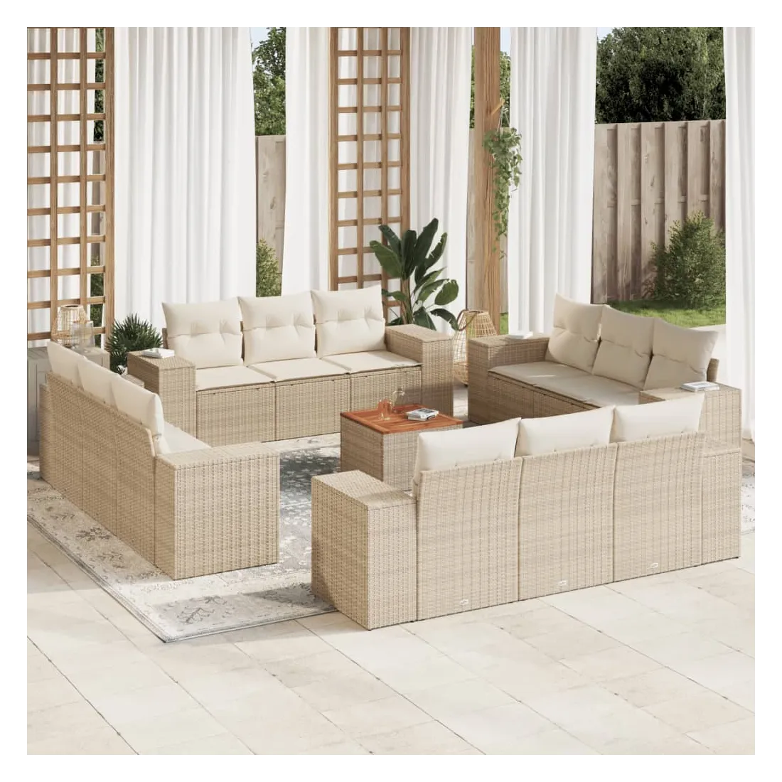 Cet ensemble de canapés de jardin est le complément parfait de votre arrière-cour, terrasse ou patio, offrant un espace confortable et accueillant pour discuter avec la famille et les amis ou simplement se détendre et profiter de l'extérieur. Matériau durable : la résine tressée, également connue sous le nom de poly rotin, est un matériau synthétique solide et nécessitant peu d'entretien qui ressemble au rotin naturel. Il est léger, facile à nettoyer et couramment utilisé pour les meubles d'extérieur en raison de sa durabilité et de ses propriétés de résistance aux intempéries.Dessus stable et facile à nettoyer : cette table de jardin a un dessus en bois d'acacia robuste, durable et facile à nettoyer avec un chiffon humide. Expérience d'assise confortable : ce mobilier d'extérieur, doté de coussins épais, offre une expérience d'assise confortable. Housse amovible et lavable : ces coussins de siège sont dotés de housses amovibles pour un lavage et un entretien faciles.Conception modulaire : cet ensemble de meubles d'extérieur a une conception modulaire, ce qui le rend complètement flexible et facile à déplacer, afin que vous puissiez créer un agencement de meubles d'extérieur personnalisé. Bon à savoir :Pour que vos meubles d'extérieur restent beaux, nous vous recommandons de les protéger avec une housse imperméable.