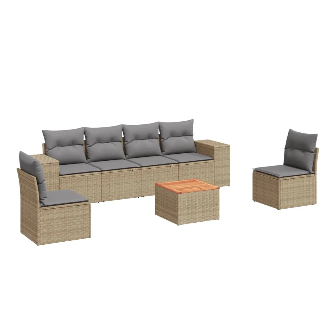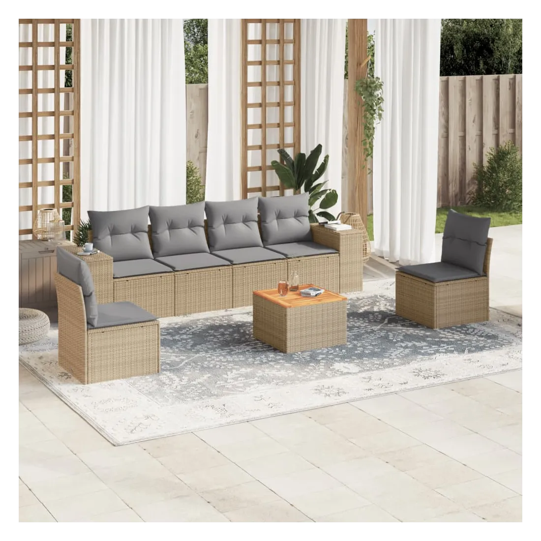Cet ensemble de canapés de jardin est le complément parfait de votre arrière-cour, terrasse ou patio, offrant un espace confortable et accueillant pour discuter avec la famille et les amis ou simplement se détendre et profiter de l'extérieur. Matériau durable : la résine tressée, également connue sous le nom de poly rotin, est un matériau synthétique solide et nécessitant peu d'entretien qui ressemble au rotin naturel. Il est léger, facile à nettoyer et couramment utilisé pour les meubles d'extérieur en raison de sa durabilité et de ses propriétés de résistance aux intempéries.Dessus stable et facile à nettoyer : cette table de jardin a un dessus en bois d'acacia robuste, durable et facile à nettoyer avec un chiffon humide. Expérience d'assise confortable : ce mobilier d'extérieur, doté de coussins épais, offre une expérience d'assise confortable. Housse amovible et lavable : ces coussins de siège sont dotés de housses amovibles pour un lavage et un entretien faciles.Conception modulaire : cet ensemble de meubles d'extérieur a une conception modulaire, ce qui le rend complètement flexible et facile à déplacer, afin que vous puissiez créer un agencement de meubles d'extérieur personnalisé. Bon à savoir :Pour que vos meubles d'extérieur restent beaux, nous vous recommandons de les protéger avec une housse imperméable.