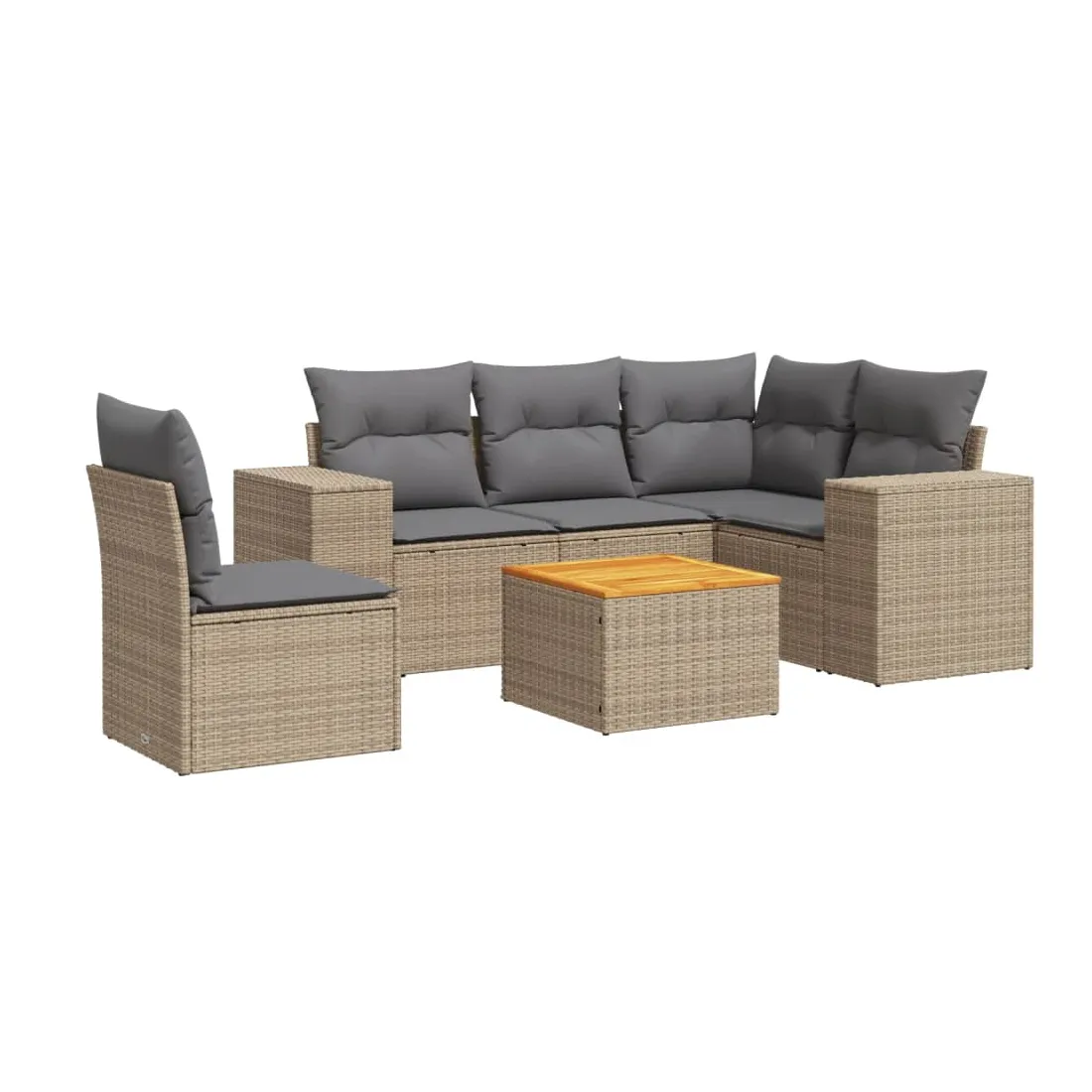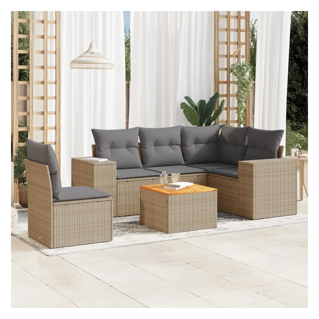 Salon de jardin avec coussins 6 pcs beige résine tressée