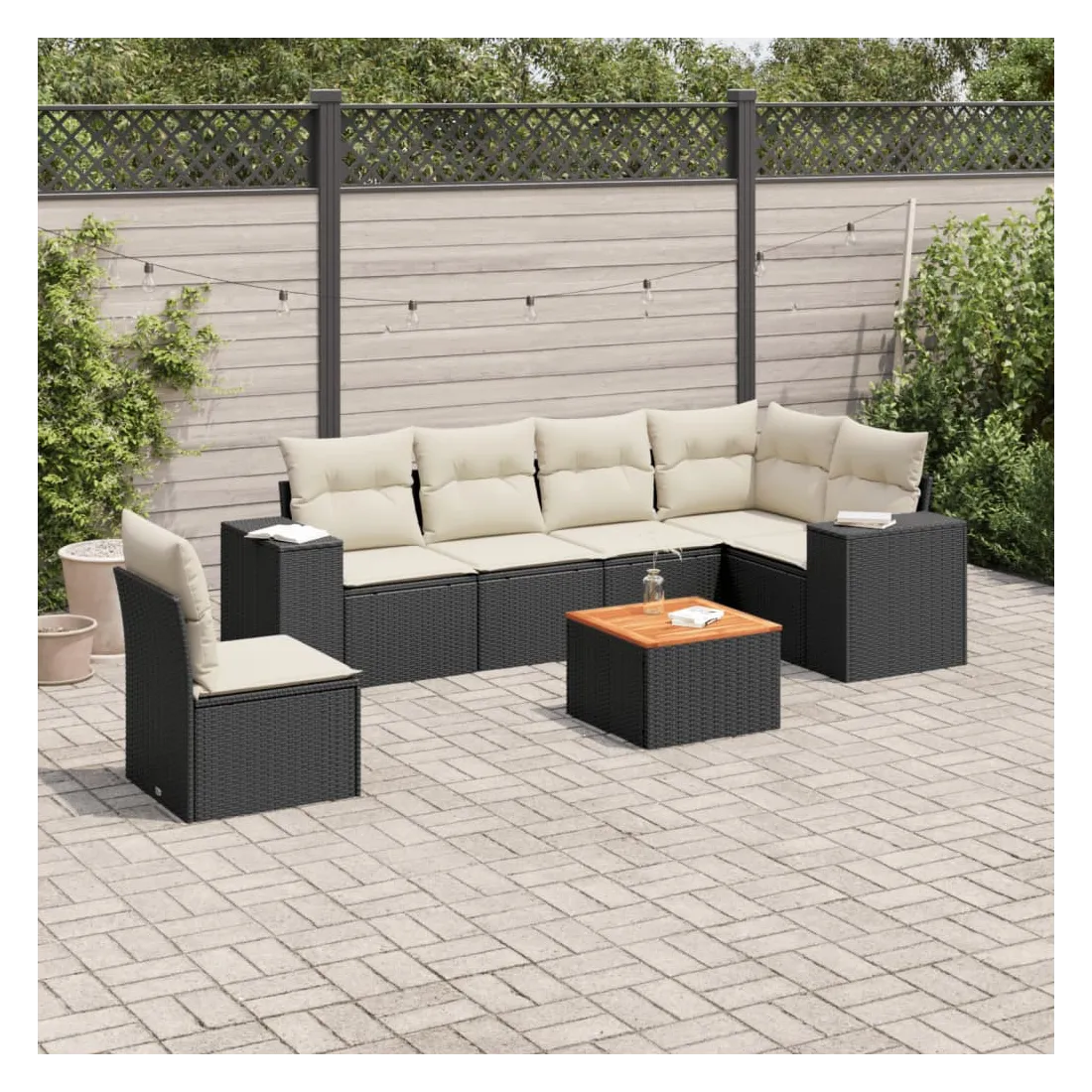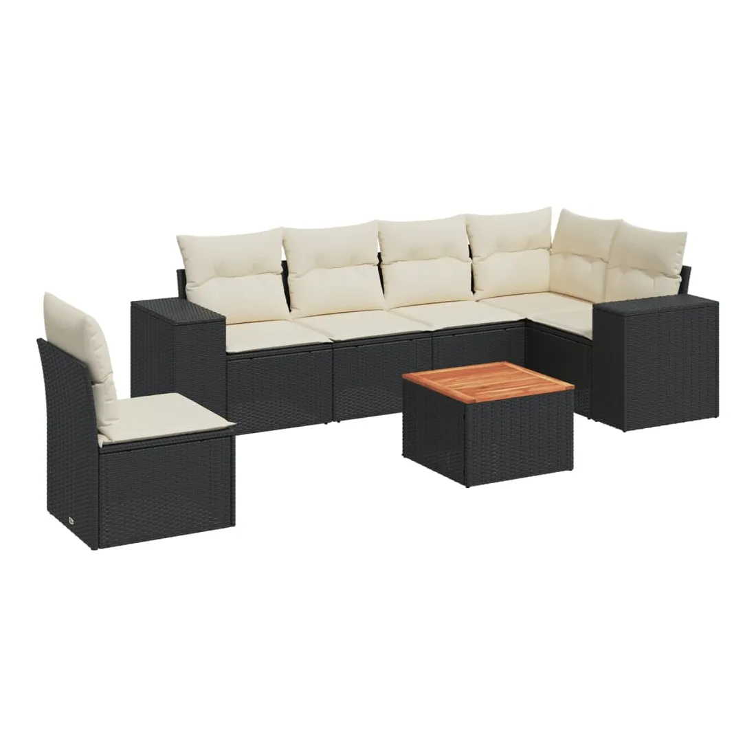 Salon de jardin 7 pcs avec coussins noir résine tressée