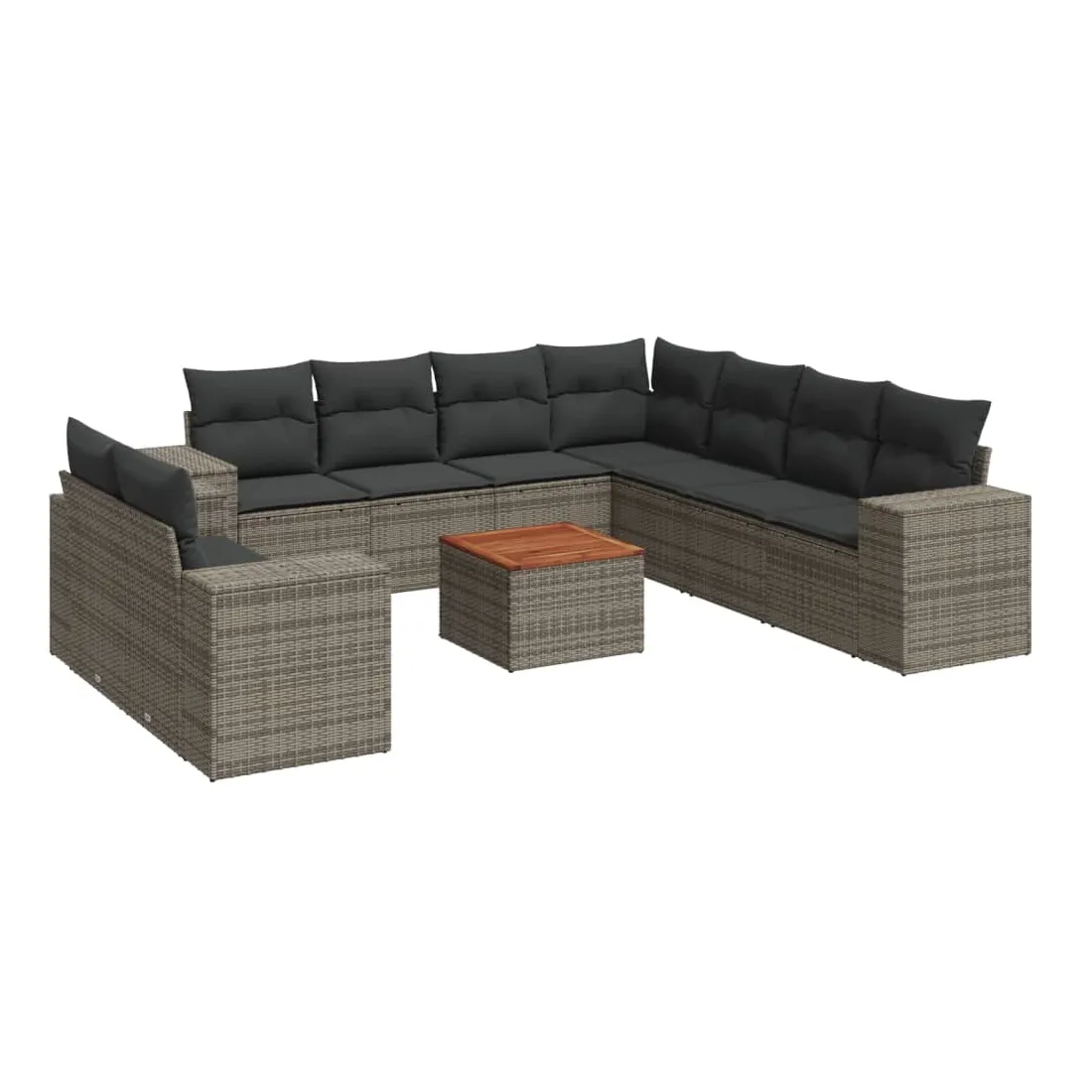 Cet ensemble de canapés de jardin est le complément parfait de votre arrière-cour, terrasse ou patio, offrant un espace confortable et accueillant pour discuter avec la famille et les amis ou simplement se détendre et profiter de l'extérieur. Matériau durable : la résine tressée, également connue sous le nom de poly rotin, est un matériau synthétique solide et nécessitant peu d'entretien qui ressemble au rotin naturel. Il est léger, facile à nettoyer et couramment utilisé pour les meubles d'extérieur en raison de sa durabilité et de ses propriétés de résistance aux intempéries.Dessus stable et facile à nettoyer : cette table de jardin a un dessus en bois d'acacia robuste, durable et facile à nettoyer avec un chiffon humide. Expérience d'assise confortable : ce mobilier d'extérieur, doté de coussins épais, offre une expérience d'assise confortable. Housse amovible et lavable : ces coussins de siège sont dotés de housses amovibles pour un lavage et un entretien faciles.Conception modulaire : cet ensemble de meubles d'extérieur a une conception modulaire, ce qui le rend complètement flexible et facile à déplacer, afin que vous puissiez créer un agencement de meubles d'extérieur personnalisé. Bon à savoir :Pour que vos meubles d'extérieur restent beaux, nous vous recommandons de les protéger avec une housse imperméable.