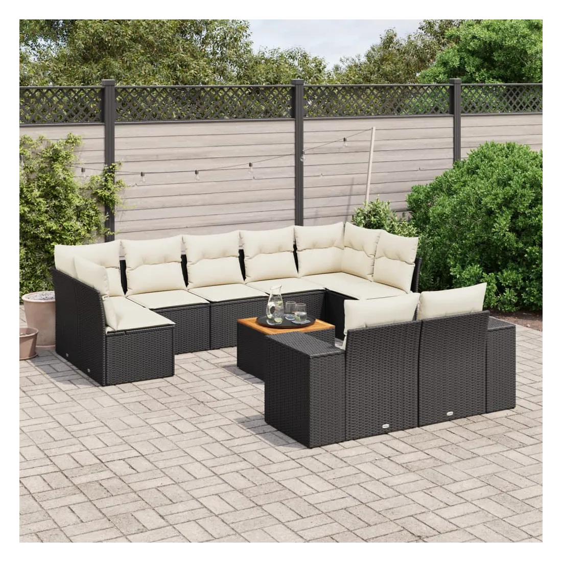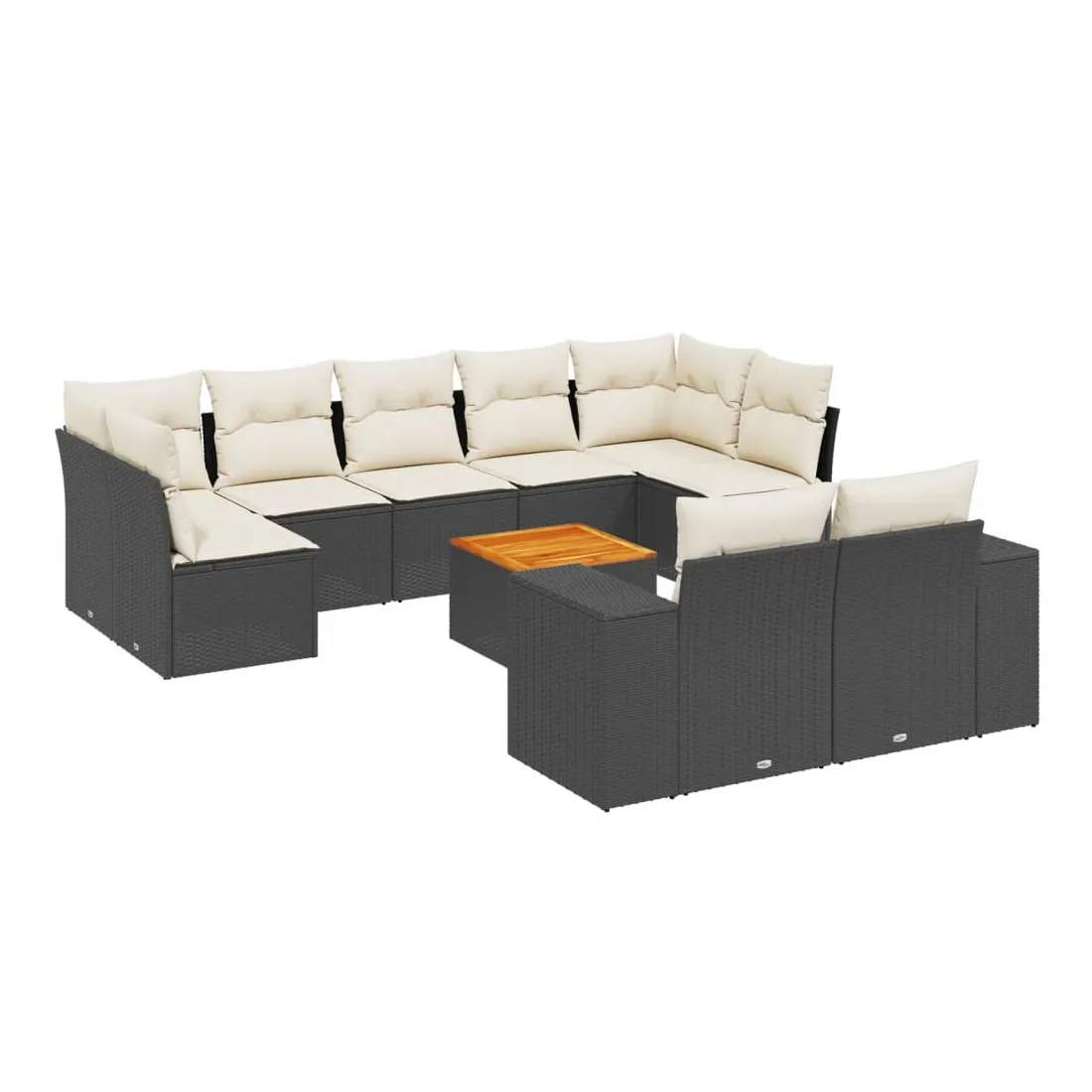 Salon de jardin 10 pcs avec coussins noir résine tressée