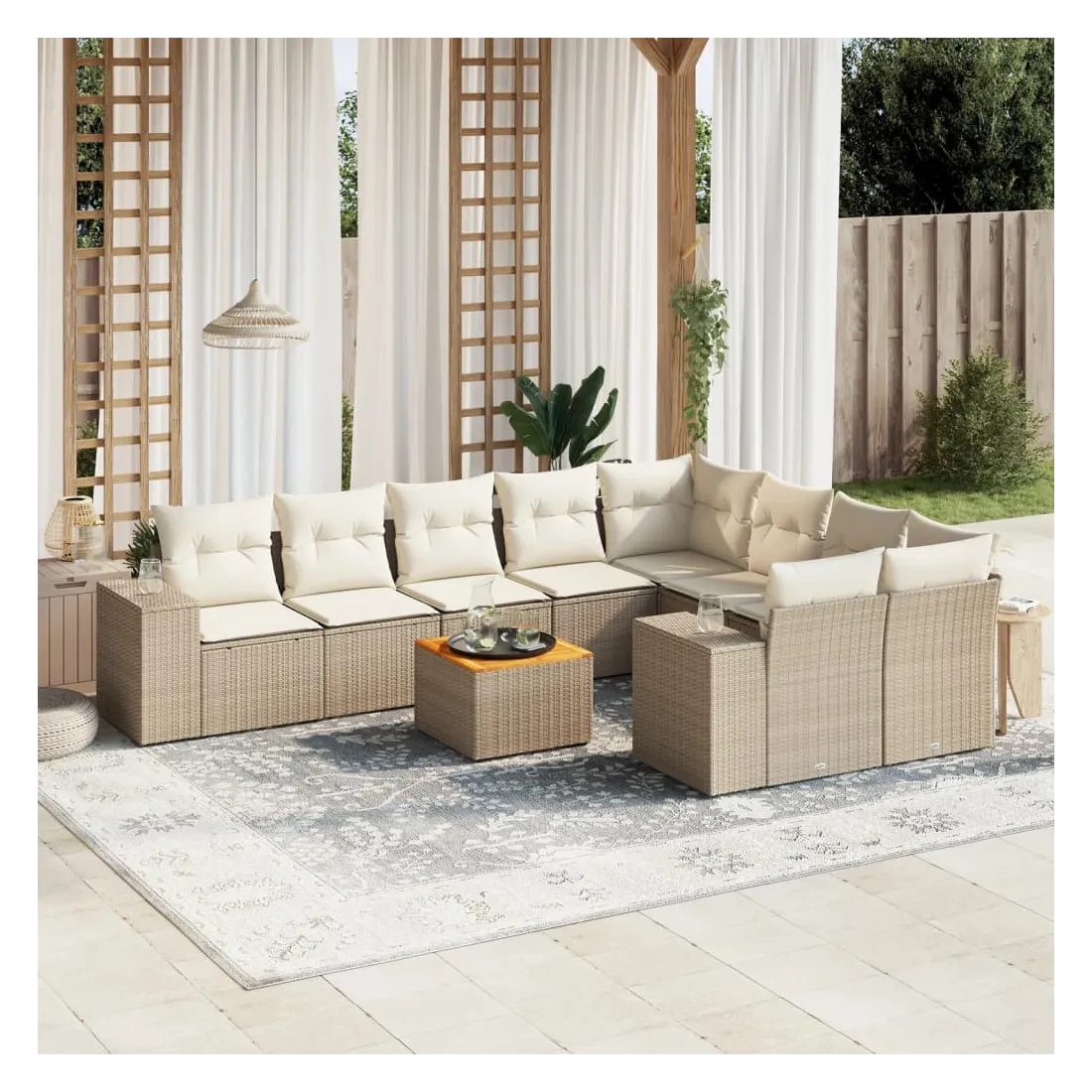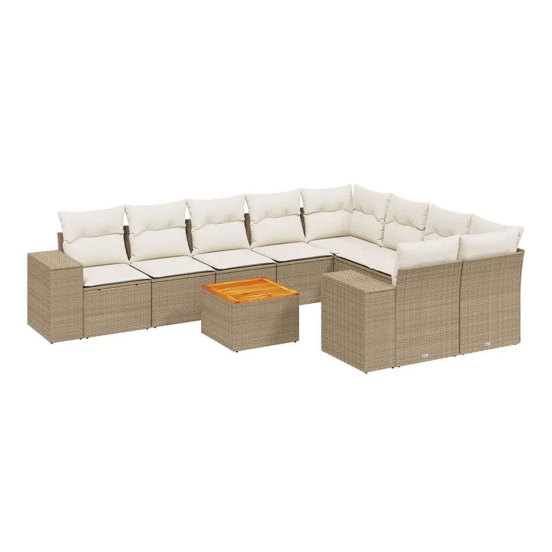 Salon de jardin avec coussins 10 pcs beige résine tressée