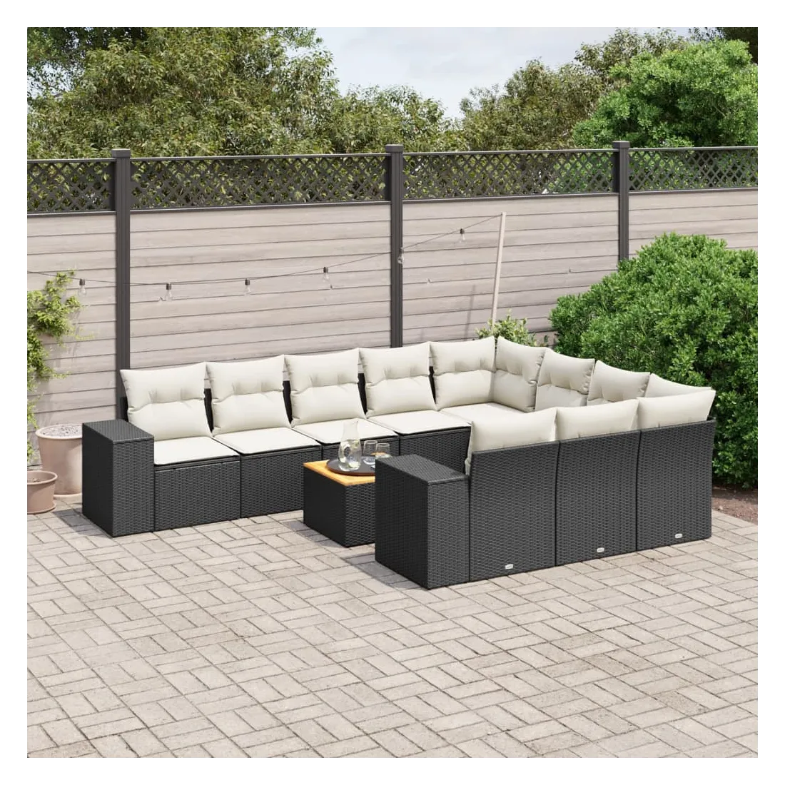 Cet ensemble de canapés de jardin est le complément parfait de votre arrière-cour, terrasse ou patio, offrant un espace confortable et accueillant pour discuter avec la famille et les amis ou simplement se détendre et profiter de l'extérieur. Matériau durable : la résine tressée, également connue sous le nom de poly rotin, est un matériau synthétique solide et nécessitant peu d'entretien qui ressemble au rotin naturel. Il est léger, facile à nettoyer et couramment utilisé pour les meubles d'extérieur en raison de sa durabilité et de ses propriétés de résistance aux intempéries.Dessus stable et facile à nettoyer : cette table de jardin a un dessus en bois d'acacia robuste, durable et facile à nettoyer avec un chiffon humide. Expérience d'assise confortable : ce mobilier d'extérieur, doté de coussins épais, offre une expérience d'assise confortable.Housse amovible et lavable : ces coussins de siège sont dotés de housses amovibles pour un lavage et un entretien faciles.Conception modulaire : cet ensemble de meubles d'extérieur a une conception modulaire, ce qui le rend complètement flexible et facile à déplacer, afin que vous puissiez créer un agencement de meubles d'extérieur personnalisé. Bon à savoir :Pour que vos meubles d'extérieur restent beaux, nous vous recommandons de les protéger avec une housse imperméable.