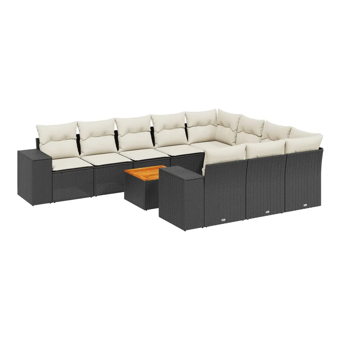 Salon de jardin 11 pcs avec coussins noir résine tressée