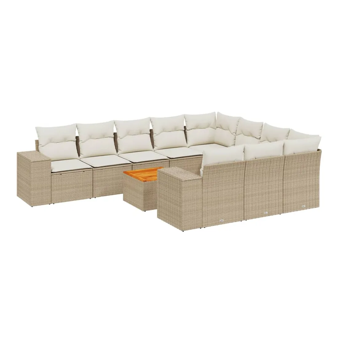 Cet ensemble de canapés de jardin est le complément parfait de votre arrière-cour, terrasse ou patio, offrant un espace confortable et accueillant pour discuter avec la famille et les amis ou simplement se détendre et profiter de l'extérieur. Matériau durable : la résine tressée, également connue sous le nom de poly rotin, est un matériau synthétique solide et nécessitant peu d'entretien qui ressemble au rotin naturel. Il est léger, facile à nettoyer et couramment utilisé pour les meubles d'extérieur en raison de sa durabilité et de ses propriétés de résistance aux intempéries.Dessus stable et facile à nettoyer : cette table de jardin a un dessus en bois d'acacia robuste, durable et facile à nettoyer avec un chiffon humide. Expérience d'assise confortable : ce mobilier d'extérieur, doté de coussins épais, offre une expérience d'assise confortable.Housse amovible et lavable : ces coussins de siège sont dotés de housses amovibles pour un lavage et un entretien faciles.Conception modulaire : cet ensemble de meubles d'extérieur a une conception modulaire, ce qui le rend complètement flexible et facile à déplacer, afin que vous puissiez créer un agencement de meubles d'extérieur personnalisé. Bon à savoir :Pour que vos meubles d'extérieur restent beaux, nous vous recommandons de les protéger avec une housse imperméable.