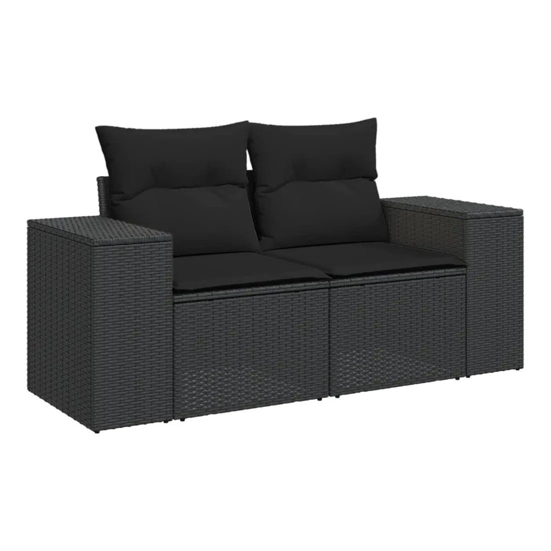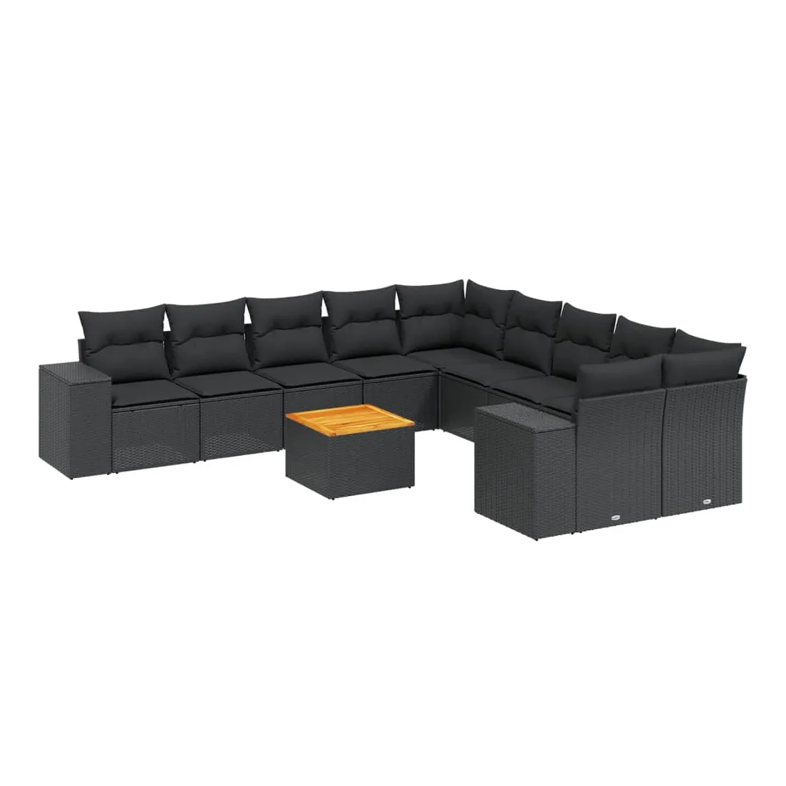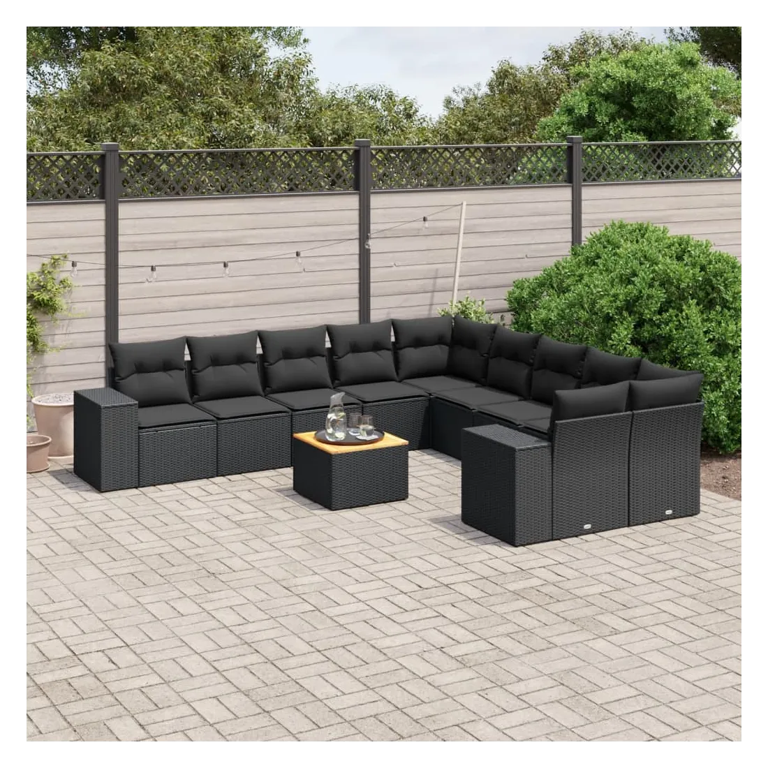Salon de jardin 11 pcs avec coussins noir résine tressée