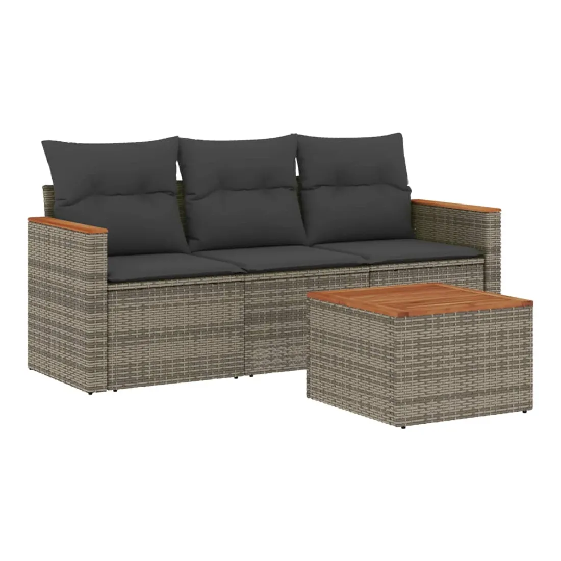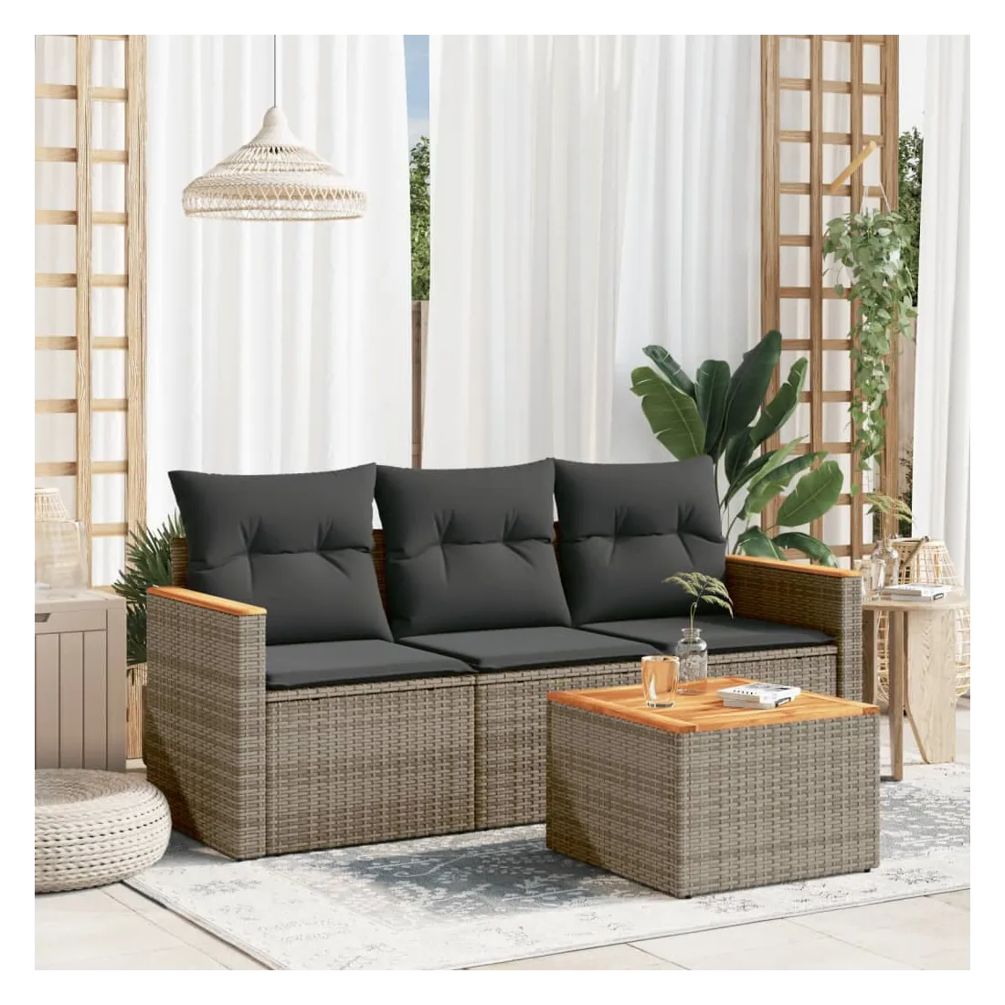 Cet ensemble de canapés de jardin est le complément parfait de votre arrière-cour, terrasse ou patio, offrant un espace confortable et accueillant pour discuter avec la famille et les amis ou simplement se détendre et profiter de l'extérieur. Matériau durable : la résine tressée, également connue sous le nom de poly rotin, est un matériau synthétique solide et nécessitant peu d'entretien qui ressemble au rotin naturel. Il est léger, facile à nettoyer et couramment utilisé pour les meubles d'extérieur en raison de sa durabilité et de ses propriétés de résistance aux intempéries.Dessus stable et facile à nettoyer : cette table de jardin a un dessus en bois d'acacia robuste, durable et facile à nettoyer avec un chiffon humide.Housse amovible et lavable : ces coussins de siège sont dotés de housses amovibles pour un lavage et un entretien faciles.Cadre robuste et stable : le cadre en acier enduit de poudre assure la solidité et la stabilité du meuble de jardin pour une utilisation quotidienne à l'extérieur.Conception modulaire : cet ensemble de meubles d'extérieur a une conception modulaire, ce qui le rend complètement flexible et facile à déplacer, afin que vous puissiez créer un agencement de meubles d'extérieur personnalisé. Bon à savoir :Pour que vos meubles d'extérieur restent beaux, nous vous recommandons de les protéger avec une housse imperméable.