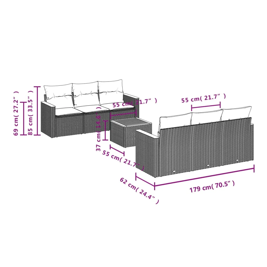 Cet ensemble de canapés de jardin est le complément parfait de votre arrière-cour, terrasse ou patio, offrant un espace confortable et accueillant pour discuter avec la famille et les amis ou simplement se détendre et profiter de l'extérieur. Matériau durable : la résine tressée, également connue sous le nom de poly rotin, est un matériau synthétique solide et nécessitant peu d'entretien qui ressemble au rotin naturel. Il est léger, facile à nettoyer et couramment utilisé pour les meubles d'extérieur en raison de sa durabilité et de ses propriétés de résistance aux intempéries.Dessus stable et facile à nettoyer : cette table de jardin a un dessus en bois d'acacia robuste, durable et facile à nettoyer avec un chiffon humide.Housse amovible et lavable : ces coussins de siège sont dotés de housses amovibles pour un lavage et un entretien faciles.Cadre robuste et stable : le cadre en acier enduit de poudre assure la solidité et la stabilité du meuble de jardin pour une utilisation quotidienne à l'extérieur.Conception modulaire : cet ensemble de meubles d'extérieur a une conception modulaire, ce qui le rend complètement flexible et facile à déplacer, afin que vous puissiez créer un agencement de meubles d'extérieur personnalisé. Bon à savoir :Pour que vos meubles d'extérieur restent beaux, nous vous recommandons de les protéger avec une housse imperméable.