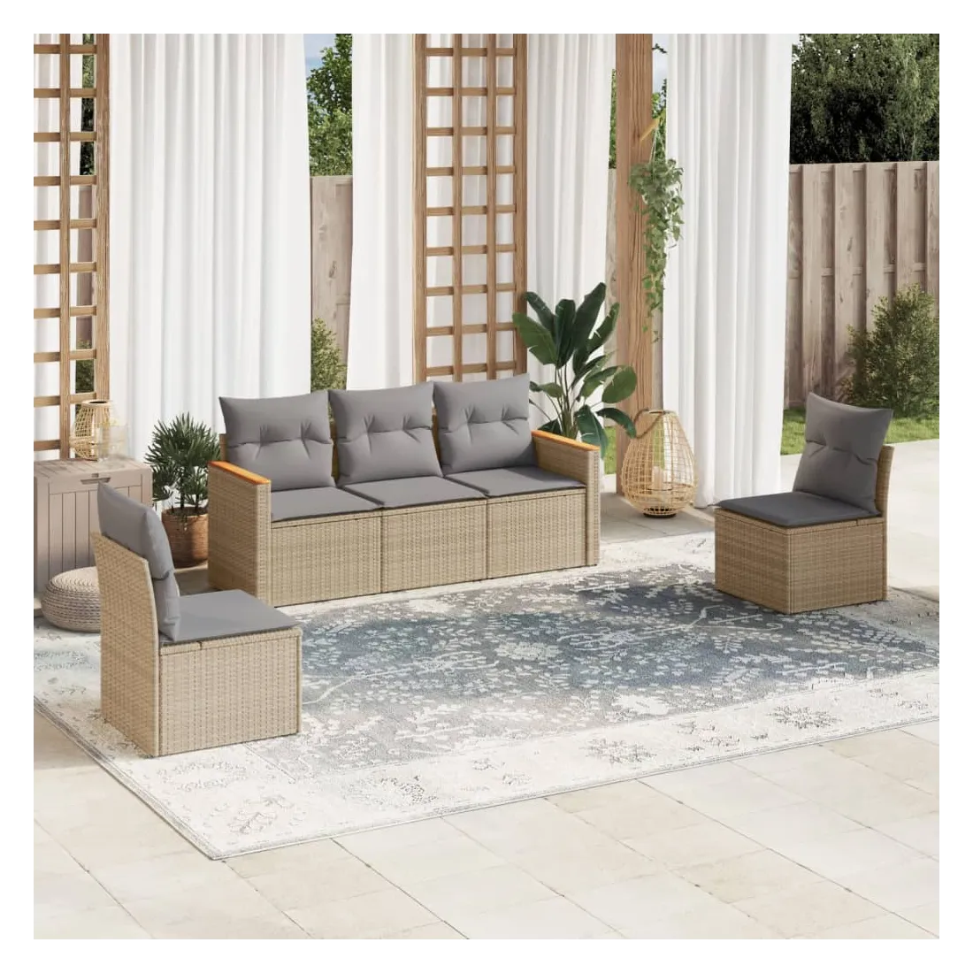 Cet ensemble de canapés de jardin est le complément parfait de votre arrière-cour, terrasse ou patio, offrant un espace confortable et accueillant pour discuter avec la famille et les amis ou simplement se détendre et profiter de l'extérieur. Matériau durable : la résine tressée, également connue sous le nom de poly rotin, est un matériau synthétique solide et nécessitant peu d'entretien qui ressemble au rotin naturel. Il est léger, facile à nettoyer et couramment utilisé pour les meubles d'extérieur en raison de sa durabilité et de ses propriétés de résistance aux intempéries.Housse amovible et lavable : ces coussins de siège sont dotés de housses amovibles pour un lavage et un entretien faciles.Cadre robuste et stable : le cadre en acier enduit de poudre assure la solidité et la stabilité du meuble de jardin pour une utilisation quotidienne à l'extérieur.Conception modulaire : cet ensemble de meubles d'extérieur a une conception modulaire, ce qui le rend complètement flexible et facile à déplacer, afin que vous puissiez créer un agencement de meubles d'extérieur personnalisé. Bon à savoir :Pour que vos meubles d'extérieur restent beaux, nous vous recommandons de les protéger avec une housse imperméable.
