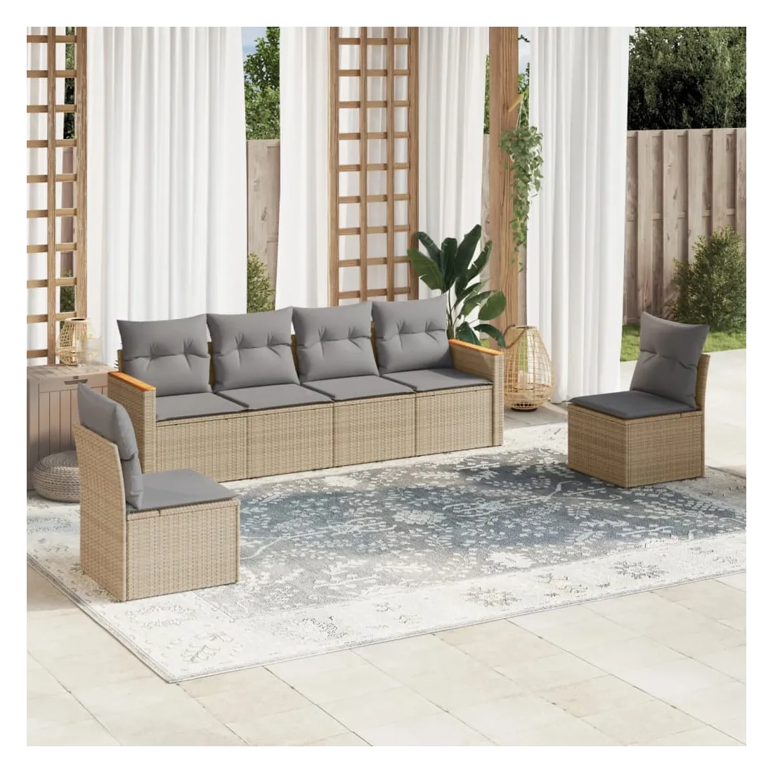 Cet ensemble de canapés de jardin est le complément parfait de votre arrière-cour, terrasse ou patio, offrant un espace confortable et accueillant pour discuter avec la famille et les amis ou simplement se détendre et profiter de l'extérieur. Matériau durable : la résine tressée, également connue sous le nom de poly rotin, est un matériau synthétique solide et nécessitant peu d'entretien qui ressemble au rotin naturel. Il est léger, facile à nettoyer et couramment utilisé pour les meubles d'extérieur en raison de sa durabilité et de ses propriétés de résistance aux intempéries.Housse amovible et lavable : ces coussins de siège sont dotés de housses amovibles pour un lavage et un entretien faciles.Cadre robuste et stable : le cadre en acier enduit de poudre assure la solidité et la stabilité du meuble de jardin pour une utilisation quotidienne à l'extérieur.Conception modulaire : cet ensemble de meubles d'extérieur a une conception modulaire, ce qui le rend complètement flexible et facile à déplacer, afin que vous puissiez créer un agencement de meubles d'extérieur personnalisé. Bon à savoir :Pour que vos meubles d'extérieur restent beaux, nous vous recommandons de les protéger avec une housse imperméable.