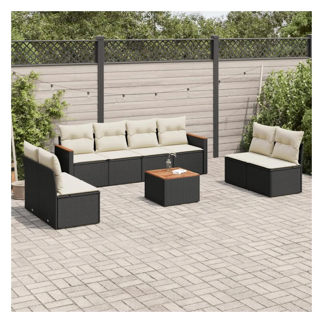 Cet ensemble de canapés de jardin est le complément parfait de votre arrière-cour, terrasse ou patio, offrant un espace confortable et accueillant pour discuter avec la famille et les amis ou simplement se détendre et profiter de l'extérieur. Matériau durable : la résine tressée, également connue sous le nom de poly rotin, est un matériau synthétique solide et nécessitant peu d'entretien qui ressemble au rotin naturel. Il est léger, facile à nettoyer et couramment utilisé pour les meubles d'extérieur en raison de sa durabilité et de ses propriétés de résistance aux intempéries.Dessus stable et facile à nettoyer : cette table de jardin a un dessus en bois d'acacia robuste, durable et facile à nettoyer avec un chiffon humide.Housse amovible et lavable : ces coussins de siège sont dotés de housses amovibles pour un lavage et un entretien faciles.Cadre robuste et stable : le cadre en acier enduit de poudre assure la solidité et la stabilité du meuble de jardin pour une utilisation quotidienne à l'extérieur.Conception modulaire : cet ensemble de meubles d'extérieur a une conception modulaire, ce qui le rend complètement flexible et facile à déplacer, afin que vous puissiez créer un agencement de meubles d'extérieur personnalisé. Bon à savoir :Pour que vos meubles d'extérieur restent beaux, nous vous recommandons de les protéger avec une housse imperméable.