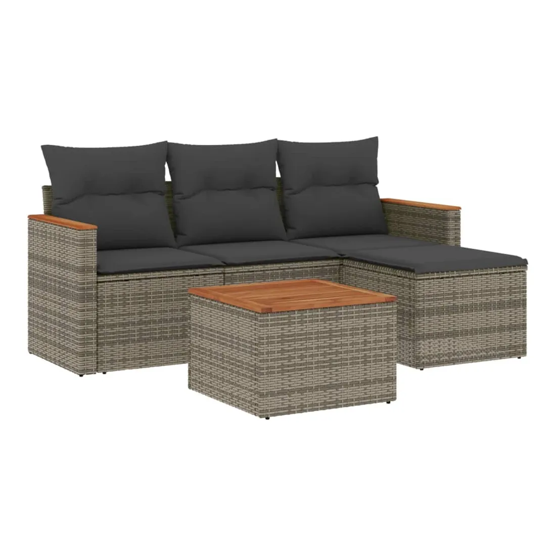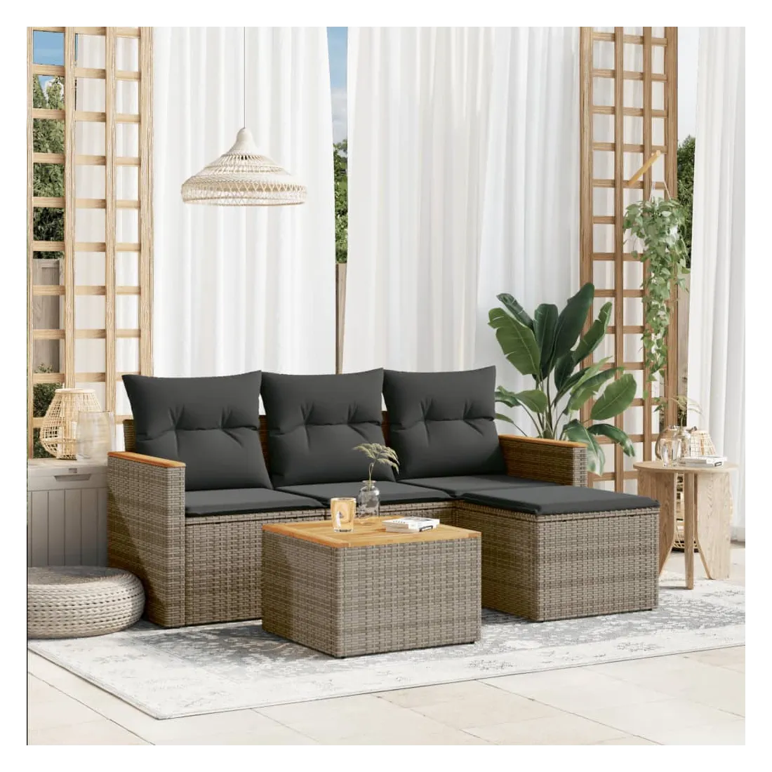 Cet ensemble de canapés de jardin est le complément parfait de votre arrière-cour, terrasse ou patio, offrant un espace confortable et accueillant pour discuter avec la famille et les amis ou simplement se détendre et profiter de l'extérieur. Matériau durable : la résine tressée, également connue sous le nom de poly rotin, est un matériau synthétique solide et nécessitant peu d'entretien qui ressemble au rotin naturel. Il est léger, facile à nettoyer et couramment utilisé pour les meubles d'extérieur en raison de sa durabilité et de ses propriétés de résistance aux intempéries.Dessus stable et facile à nettoyer : cette table de jardin a un dessus en bois d'acacia robuste, durable et facile à nettoyer avec un chiffon humide.Housse amovible et lavable : ces coussins de siège sont dotés de housses amovibles pour un lavage et un entretien faciles.Cadre robuste et stable : le cadre en acier enduit de poudre assure la solidité et la stabilité du meuble de jardin pour une utilisation quotidienne à l'extérieur.Conception modulaire : cet ensemble de meubles d'extérieur a une conception modulaire, ce qui le rend complètement flexible et facile à déplacer, afin que vous puissiez créer un agencement de meubles d'extérieur personnalisé. Bon à savoir :Pour que vos meubles d'extérieur restent beaux, nous vous recommandons de les protéger avec une housse imperméable.