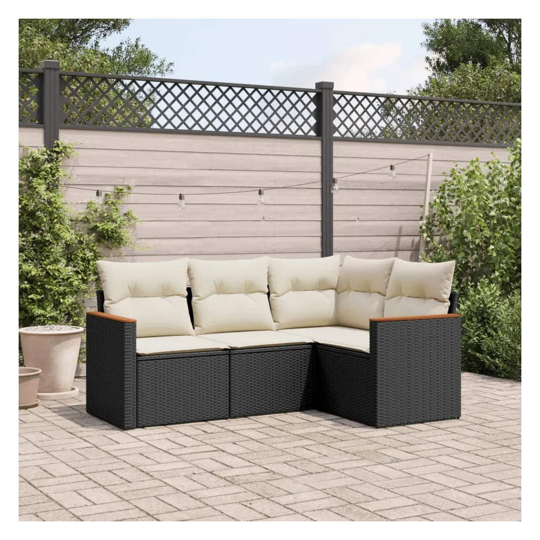 Cet ensemble de canapés de jardin est le complément parfait de votre arrière-cour, terrasse ou patio, offrant un espace confortable et accueillant pour discuter avec la famille et les amis ou simplement se détendre et profiter de l'extérieur. Matériau durable : la résine tressée, également connue sous le nom de poly rotin, est un matériau synthétique solide et nécessitant peu d'entretien qui ressemble au rotin naturel. Il est léger, facile à nettoyer et couramment utilisé pour les meubles d'extérieur en raison de sa durabilité et de ses propriétés de résistance aux intempéries.Housse amovible et lavable : ces coussins de siège sont dotés de housses amovibles pour un lavage et un entretien faciles.Cadre robuste et stable : le cadre en acier enduit de poudre assure la solidité et la stabilité du meuble de jardin pour une utilisation quotidienne à l'extérieur.Conception modulaire : cet ensemble de meubles d'extérieur a une conception modulaire, ce qui le rend complètement flexible et facile à déplacer, afin que vous puissiez créer un agencement de meubles d'extérieur personnalisé. Bon à savoir :Pour que vos meubles d'extérieur restent beaux, nous vous recommandons de les protéger avec une housse imperméable.