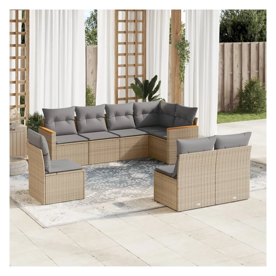 Cet ensemble de canapés de jardin est le complément parfait de votre arrière-cour, terrasse ou patio, offrant un espace confortable et accueillant pour discuter avec la famille et les amis ou simplement se détendre et profiter de l'extérieur. Matériau durable : la résine tressée, également connue sous le nom de poly rotin, est un matériau synthétique solide et nécessitant peu d'entretien qui ressemble au rotin naturel. Il est léger, facile à nettoyer et couramment utilisé pour les meubles d'extérieur en raison de sa durabilité et de ses propriétés de résistance aux intempéries.Housse amovible et lavable : ces coussins de siège sont dotés de housses amovibles pour un lavage et un entretien faciles.Cadre robuste et stable : le cadre en acier enduit de poudre assure la solidité et la stabilité du meuble de jardin pour une utilisation quotidienne à l'extérieur.Conception modulaire : cet ensemble de meubles d'extérieur a une conception modulaire, ce qui le rend complètement flexible et facile à déplacer, afin que vous puissiez créer un agencement de meubles d'extérieur personnalisé. Bon à savoir :Pour que vos meubles d'extérieur restent beaux, nous vous recommandons de les protéger avec une housse imperméable.