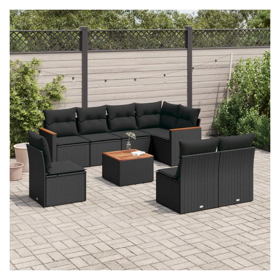 Cet ensemble de canapés de jardin est le complément parfait de votre arrière-cour, terrasse ou patio, offrant un espace confortable et accueillant pour discuter avec la famille et les amis ou simplement se détendre et profiter de l'extérieur. Matériau durable : la résine tressée, également connue sous le nom de poly rotin, est un matériau synthétique solide et nécessitant peu d'entretien qui ressemble au rotin naturel. Il est léger, facile à nettoyer et couramment utilisé pour les meubles d'extérieur en raison de sa durabilité et de ses propriétés de résistance aux intempéries.Dessus stable et facile à nettoyer : cette table de jardin a un dessus en bois d'acacia robuste, durable et facile à nettoyer avec un chiffon humide.Housse amovible et lavable : ces coussins de siège sont dotés de housses amovibles pour un lavage et un entretien faciles.Cadre robuste et stable : le cadre en acier enduit de poudre assure la solidité et la stabilité du meuble de jardin pour une utilisation quotidienne à l'extérieur.Conception modulaire : cet ensemble de meubles d'extérieur a une conception modulaire, ce qui le rend complètement flexible et facile à déplacer, afin que vous puissiez créer un agencement de meubles d'extérieur personnalisé. Bon à savoir :Pour que vos meubles d'extérieur restent beaux, nous vous recommandons de les protéger avec une housse imperméable.