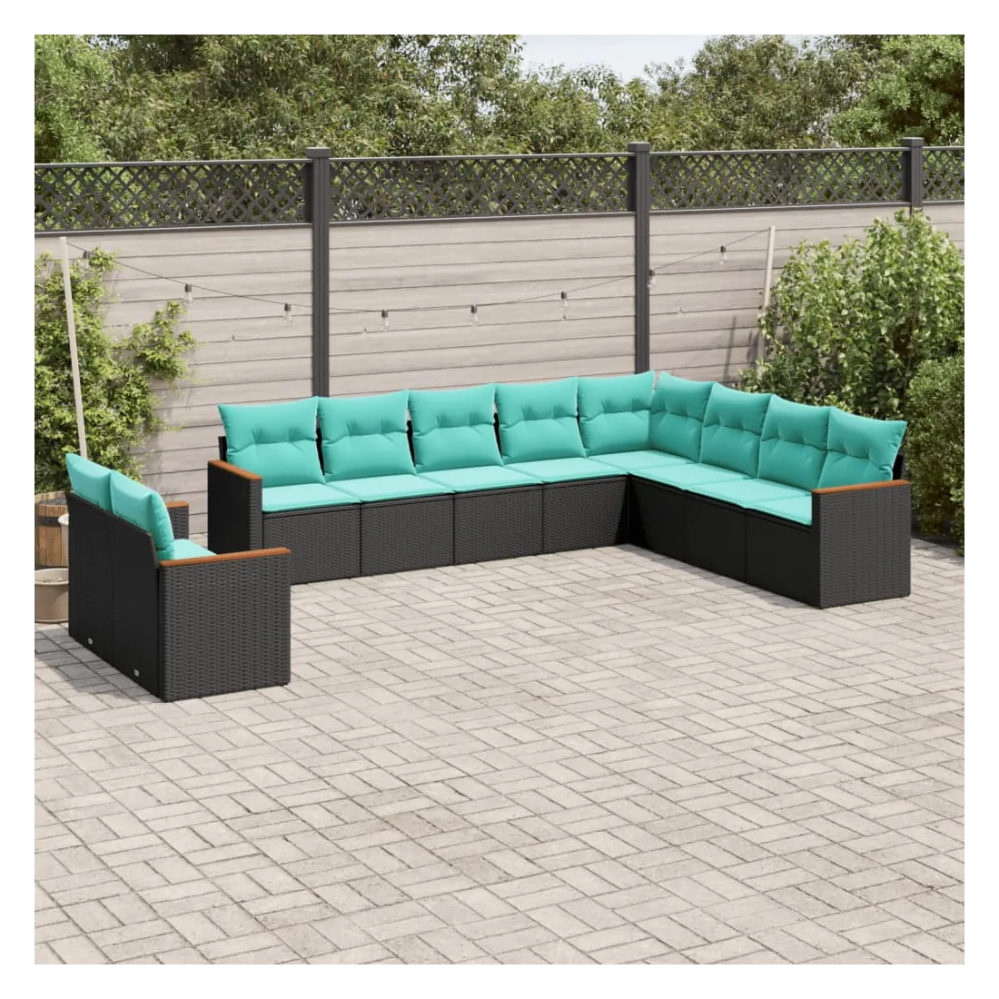 Cet ensemble de canapés de jardin est le complément parfait de votre arrière-cour, terrasse ou patio, offrant un espace confortable et accueillant pour discuter avec la famille et les amis ou simplement se détendre et profiter de l'extérieur. Matériau durable : la résine tressée, également connue sous le nom de poly rotin, est un matériau synthétique solide et nécessitant peu d'entretien qui ressemble au rotin naturel. Elle est légère, facile à nettoyer et couramment utilisée pour les meubles d'extérieur en raison de sa durabilité et de ses propriétés de résistance aux intempéries.Housse amovible et lavable : ces coussins de siège sont dotés de housses amovibles pour un lavage et un entretien faciles.Cadre robuste et stable : le cadre en acier enduit de poudre assure la solidité et la stabilité du meuble de jardin pour une utilisation quotidienne à l'extérieur.Conception modulaire : cet ensemble de meubles d'extérieur a une conception modulaire, ce qui le rend complètement flexible et facile à déplacer, afin que vous puissiez créer un agencement de meubles d'extérieur personnalisé. Bon à savoir :Pour que vos meubles d'extérieur restent beaux, nous vous recommandons de les protéger avec une housse imperméable.