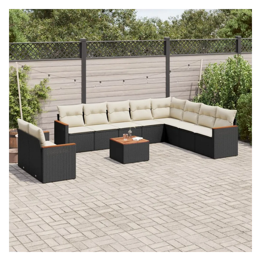 Cet ensemble de canapés de jardin est le complément parfait de votre arrière-cour, terrasse ou patio, offrant un espace confortable et accueillant pour discuter avec la famille et les amis ou simplement se détendre et profiter de l'extérieur. Matériau durable : la résine tressée, également connue sous le nom de poly rotin, est un matériau synthétique solide et nécessitant peu d'entretien qui ressemble au rotin naturel. Il est léger, facile à nettoyer et couramment utilisé pour les meubles d'extérieur en raison de sa durabilité et de ses propriétés de résistance aux intempéries.Dessus stable et facile à nettoyer : cette table de jardin a un dessus en bois d'acacia robuste, durable et facile à nettoyer avec un chiffon humide.Housse amovible et lavable : ces coussins de siège sont dotés de housses amovibles pour un lavage et un entretien faciles.Cadre robuste et stable : le cadre en acier enduit de poudre assure la solidité et la stabilité du meuble de jardin pour une utilisation quotidienne à l'extérieur.Conception modulaire : cet ensemble de meubles d'extérieur a une conception modulaire, ce qui le rend complètement flexible et facile à déplacer, afin que vous puissiez créer un agencement de meubles d'extérieur personnalisé. Bon à savoir :Pour que vos meubles d'extérieur restent beaux, nous vous recommandons de les protéger avec une housse imperméable.