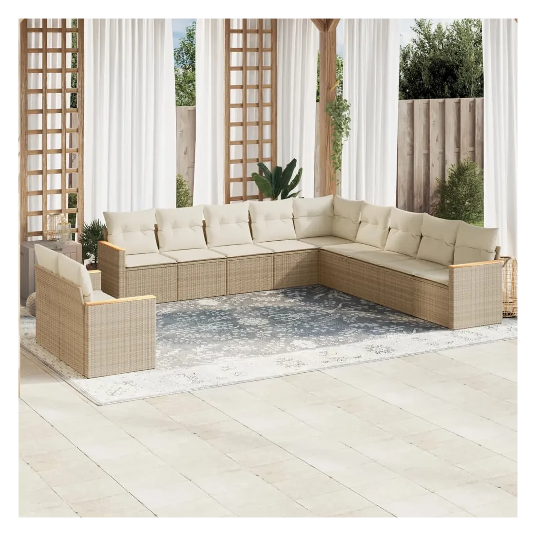 Cet ensemble de canapés de jardin est le complément parfait de votre arrière-cour, terrasse ou patio, offrant un espace confortable et accueillant pour discuter avec la famille et les amis ou simplement se détendre et profiter de l'extérieur. Matériau durable : la résine tressée, également connue sous le nom de poly rotin, est un matériau synthétique solide et nécessitant peu d'entretien qui ressemble au rotin naturel. Il est léger, facile à nettoyer et couramment utilisé pour les meubles d'extérieur en raison de sa durabilité et de ses propriétés de résistance aux intempéries.Housse amovible et lavable : ces coussins de siège sont dotés de housses amovibles pour un lavage et un entretien faciles.Cadre robuste et stable : le cadre en acier enduit de poudre assure la solidité et la stabilité du meuble de jardin pour une utilisation quotidienne à l'extérieur.Conception modulaire : cet ensemble de meubles d'extérieur a une conception modulaire, ce qui le rend complètement flexible et facile à déplacer, afin que vous puissiez créer un agencement de meubles d'extérieur personnalisé. Bon à savoir :Pour que vos meubles d'extérieur restent beaux, nous vous recommandons de les protéger avec une housse imperméable.