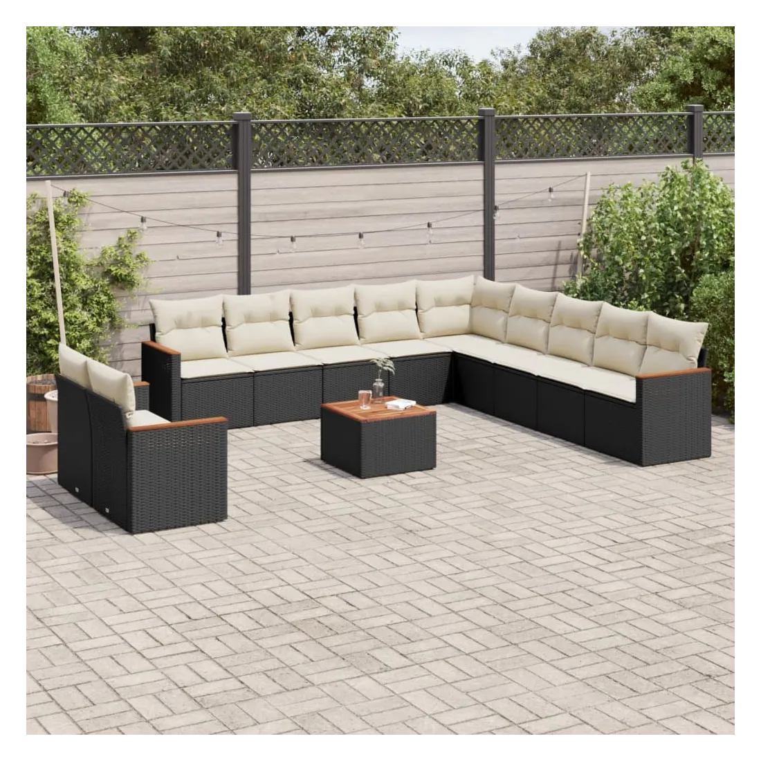 Cet ensemble de canapés de jardin est le complément parfait de votre arrière-cour, terrasse ou patio, offrant un espace confortable et accueillant pour discuter avec la famille et les amis ou simplement se détendre et profiter de l'extérieur. Matériau durable : la résine tressée, également connue sous le nom de poly rotin, est un matériau synthétique solide et nécessitant peu d'entretien qui ressemble au rotin naturel. Il est léger, facile à nettoyer et couramment utilisé pour les meubles d'extérieur en raison de sa durabilité et de ses propriétés de résistance aux intempéries.Dessus stable et facile à nettoyer : cette table de jardin a un dessus en bois d'acacia robuste, durable et facile à nettoyer avec un chiffon humide.Housse amovible et lavable : ces coussins de siège sont dotés de housses amovibles pour un lavage et un entretien faciles.Cadre robuste et stable : le cadre en acier enduit de poudre assure la solidité et la stabilité du meuble de jardin pour une utilisation quotidienne à l'extérieur.Conception modulaire : cet ensemble de meubles d'extérieur a une conception modulaire, ce qui le rend complètement flexible et facile à déplacer, afin que vous puissiez créer un agencement de meubles d'extérieur personnalisé. Bon à savoir :Pour que vos meubles d'extérieur restent beaux, nous vous recommandons de les protéger avec une housse imperméable.