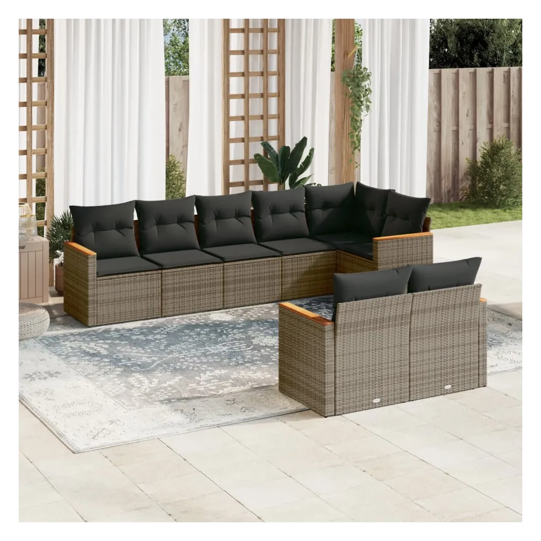 Salon de jardin 8 pcs avec coussins gris résine tressée