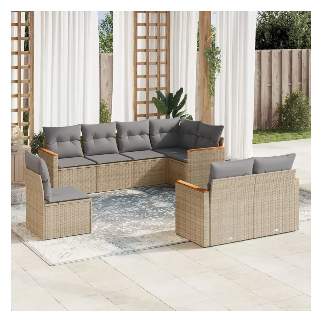 Cet ensemble de canapés de jardin est le complément parfait de votre arrière-cour, terrasse ou patio, offrant un espace confortable et accueillant pour discuter avec la famille et les amis ou simplement se détendre et profiter de l'extérieur. Matériau durable : la résine tressée, également connue sous le nom de poly rotin, est un matériau synthétique solide et nécessitant peu d'entretien qui ressemble au rotin naturel. Il est léger, facile à nettoyer et couramment utilisé pour les meubles d'extérieur en raison de sa durabilité et de ses propriétés de résistance aux intempéries.Housse amovible et lavable : ces coussins de siège sont dotés de housses amovibles pour un lavage et un entretien faciles.Cadre robuste et stable : le cadre en acier enduit de poudre assure la solidité et la stabilité du meuble de jardin pour une utilisation quotidienne à l'extérieur.Conception modulaire : cet ensemble de meubles d'extérieur a une conception modulaire, ce qui le rend complètement flexible et facile à déplacer, afin que vous puissiez créer un agencement de meubles d'extérieur personnalisé. Bon à savoir :Pour que vos meubles d'extérieur restent beaux, nous vous recommandons de les protéger avec une housse imperméable.
