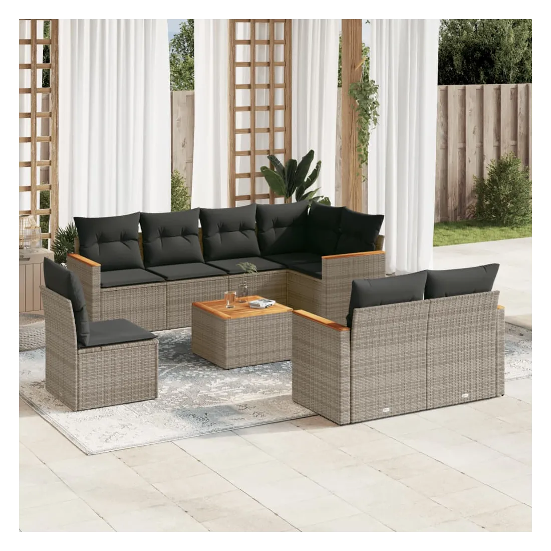 Cet ensemble de canapés de jardin est le complément parfait de votre arrière-cour, terrasse ou patio, offrant un espace confortable et accueillant pour discuter avec la famille et les amis ou simplement se détendre et profiter de l'extérieur. Matériau durable : la résine tressée, également connue sous le nom de poly rotin, est un matériau synthétique solide et nécessitant peu d'entretien qui ressemble au rotin naturel. Il est léger, facile à nettoyer et couramment utilisé pour les meubles d'extérieur en raison de sa durabilité et de ses propriétés de résistance aux intempéries.Dessus stable et facile à nettoyer : cette table de jardin a un dessus en bois d'acacia robuste, durable et facile à nettoyer avec un chiffon humide.Housse amovible et lavable : ces coussins de siège sont dotés de housses amovibles pour un lavage et un entretien faciles.Cadre robuste et stable : le cadre en acier enduit de poudre assure la solidité et la stabilité du meuble de jardin pour une utilisation quotidienne à l'extérieur.Conception modulaire : cet ensemble de meubles d'extérieur a une conception modulaire, ce qui le rend complètement flexible et facile à déplacer, afin que vous puissiez créer un agencement de meubles d'extérieur personnalisé. Bon à savoir :Pour que vos meubles d'extérieur restent beaux, nous vous recommandons de les protéger avec une housse imperméable.