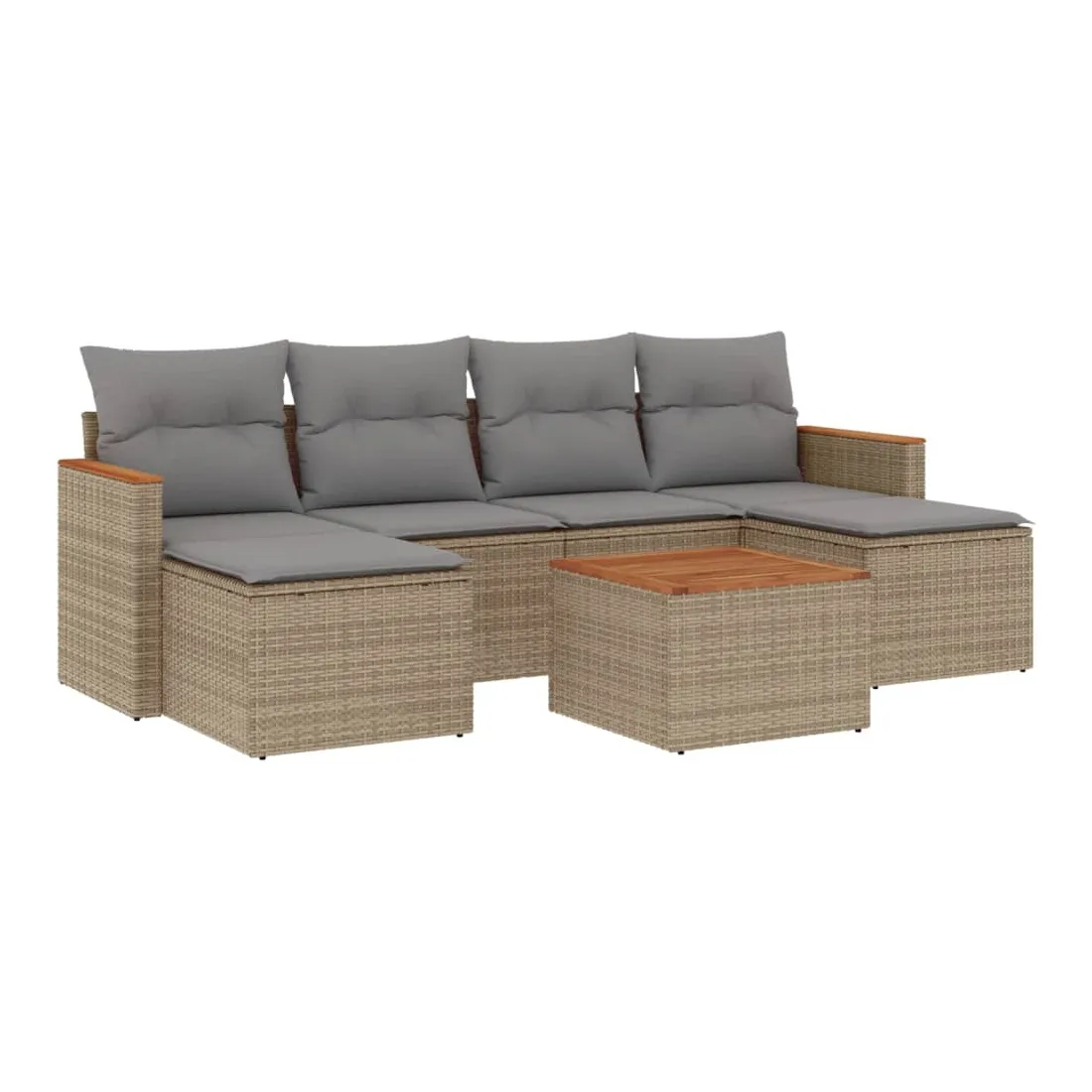 Cet ensemble de canapés de jardin est le complément parfait de votre arrière-cour, terrasse ou patio, offrant un espace confortable et accueillant pour discuter avec la famille et les amis ou simplement se détendre et profiter de l'extérieur. Matériau durable : la résine tressée, également connue sous le nom de poly rotin, est un matériau synthétique solide et nécessitant peu d'entretien qui ressemble au rotin naturel. Il est léger, facile à nettoyer et couramment utilisé pour les meubles d'extérieur en raison de sa durabilité et de ses propriétés de résistance aux intempéries.Dessus stable et facile à nettoyer : cette table de jardin a un dessus en bois d'acacia robuste, durable et facile à nettoyer avec un chiffon humide.Housse amovible et lavable : ces coussins de siège sont dotés de housses amovibles pour un lavage et un entretien faciles.Cadre robuste et stable : le cadre en acier enduit de poudre assure la solidité et la stabilité du meuble de jardin pour une utilisation quotidienne à l'extérieur.Conception modulaire : cet ensemble de meubles d'extérieur a une conception modulaire, ce qui le rend complètement flexible et facile à déplacer, afin que vous puissiez créer un agencement de meubles d'extérieur personnalisé. Bon à savoir :Pour que vos meubles d'extérieur restent beaux, nous vous recommandons de les protéger avec une housse imperméable.