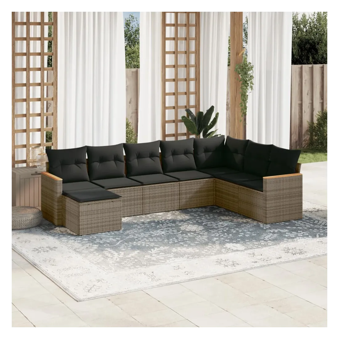 Cet ensemble de canapés de jardin est le complément parfait de votre arrière-cour, terrasse ou patio, offrant un espace confortable et accueillant pour discuter avec la famille et les amis ou simplement se détendre et profiter de l'extérieur. Matériau durable : la résine tressée, également connue sous le nom de poly rotin, est un matériau synthétique solide et nécessitant peu d'entretien qui ressemble au rotin naturel. Il est léger, facile à nettoyer et couramment utilisé pour les meubles d'extérieur en raison de sa durabilité et de ses propriétés de résistance aux intempéries.Housse amovible et lavable : ces coussins de siège sont dotés de housses amovibles pour un lavage et un entretien faciles.Cadre robuste et stable : le cadre en acier enduit de poudre assure la solidité et la stabilité du meuble de jardin pour une utilisation quotidienne à l'extérieur.Conception modulaire : cet ensemble de meubles d'extérieur a une conception modulaire, ce qui le rend complètement flexible et facile à déplacer, afin que vous puissiez créer un agencement de meubles d'extérieur personnalisé. Bon à savoir :Pour que vos meubles d'extérieur restent beaux, nous vous recommandons de les protéger avec une housse imperméable.