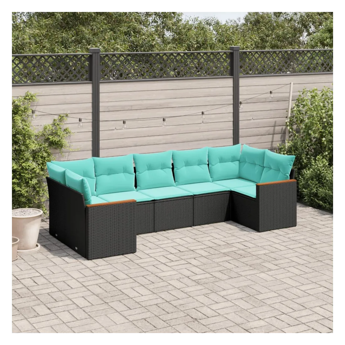 Cet ensemble de canapés de jardin est le complément parfait de votre arrière-cour, terrasse ou patio, offrant un espace confortable et accueillant pour discuter avec la famille et les amis ou simplement se détendre et profiter de l'extérieur. Matériau durable : la résine tressée, également connue sous le nom de poly rotin, est un matériau synthétique solide et nécessitant peu d'entretien qui ressemble au rotin naturel. Elle est légère, facile à nettoyer et couramment utilisée pour les meubles d'extérieur en raison de sa durabilité et de ses propriétés de résistance aux intempéries.Housse amovible et lavable : ces coussins de siège sont dotés de housses amovibles pour un lavage et un entretien faciles.Cadre robuste et stable : le cadre en acier enduit de poudre assure la solidité et la stabilité du meuble de jardin pour une utilisation quotidienne à l'extérieur.Conception modulaire : cet ensemble de meubles d'extérieur a une conception modulaire, ce qui le rend complètement flexible et facile à déplacer, afin que vous puissiez créer un agencement de meubles d'extérieur personnalisé. Bon à savoir :Pour que vos meubles d'extérieur restent beaux, nous vous recommandons de les protéger avec une housse imperméable.