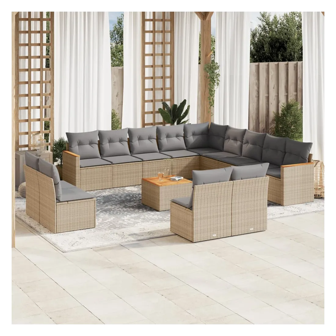 Cet ensemble de canapés de jardin est le complément parfait de votre arrière-cour, terrasse ou patio, offrant un espace confortable et accueillant pour discuter avec la famille et les amis ou simplement se détendre et profiter de l'extérieur. Matériau durable : la résine tressée, également connue sous le nom de poly rotin, est un matériau synthétique solide et nécessitant peu d'entretien qui ressemble au rotin naturel. Il est léger, facile à nettoyer et couramment utilisé pour les meubles d'extérieur en raison de sa durabilité et de ses propriétés de résistance aux intempéries.Dessus stable et facile à nettoyer : cette table de jardin a un dessus en bois d'acacia robuste, durable et facile à nettoyer avec un chiffon humide.Housse amovible et lavable : ces coussins de siège sont dotés de housses amovibles pour un lavage et un entretien faciles.Cadre robuste et stable : le cadre en acier enduit de poudre assure la solidité et la stabilité du meuble de jardin pour une utilisation quotidienne à l'extérieur.Conception modulaire : cet ensemble de meubles d'extérieur a une conception modulaire, ce qui le rend complètement flexible et facile à déplacer, afin que vous puissiez créer un agencement de meubles d'extérieur personnalisé. Bon à savoir :Pour que vos meubles d'extérieur restent beaux, nous vous recommandons de les protéger avec une housse imperméable.