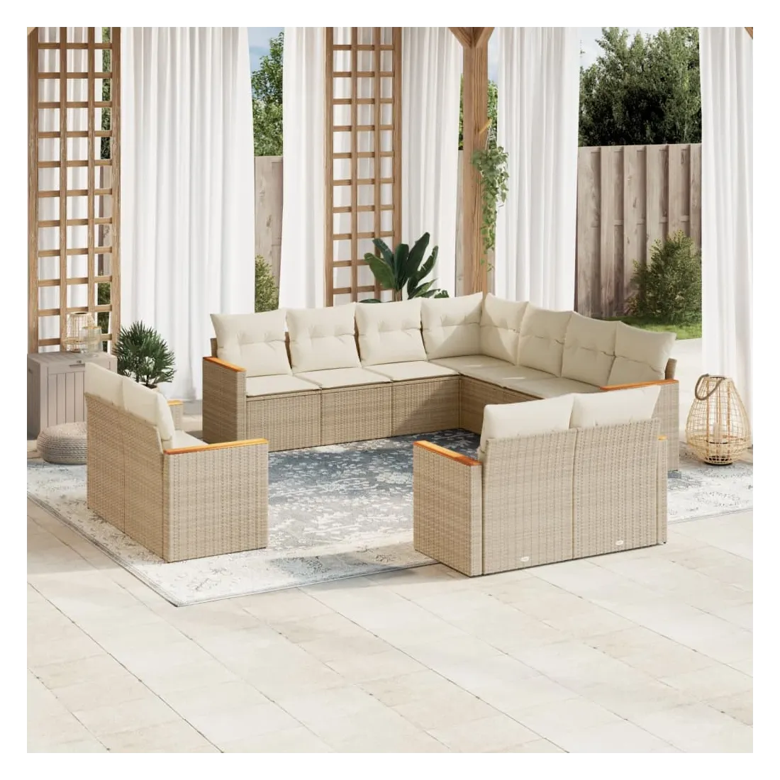 Cet ensemble de canapés de jardin est le complément parfait de votre arrière-cour, terrasse ou patio, offrant un espace confortable et accueillant pour discuter avec la famille et les amis ou simplement se détendre et profiter de l'extérieur. Matériau durable : la résine tressée, également connue sous le nom de poly rotin, est un matériau synthétique solide et nécessitant peu d'entretien qui ressemble au rotin naturel. Il est léger, facile à nettoyer et couramment utilisé pour les meubles d'extérieur en raison de sa durabilité et de ses propriétés de résistance aux intempéries.Housse amovible et lavable : ces coussins de siège sont dotés de housses amovibles pour un lavage et un entretien faciles.Cadre robuste et stable : le cadre en acier enduit de poudre assure la solidité et la stabilité du meuble de jardin pour une utilisation quotidienne à l'extérieur.Conception modulaire : cet ensemble de meubles d'extérieur a une conception modulaire, ce qui le rend complètement flexible et facile à déplacer, afin que vous puissiez créer un agencement de meubles d'extérieur personnalisé. Bon à savoir :Pour que vos meubles d'extérieur restent beaux, nous vous recommandons de les protéger avec une housse imperméable.