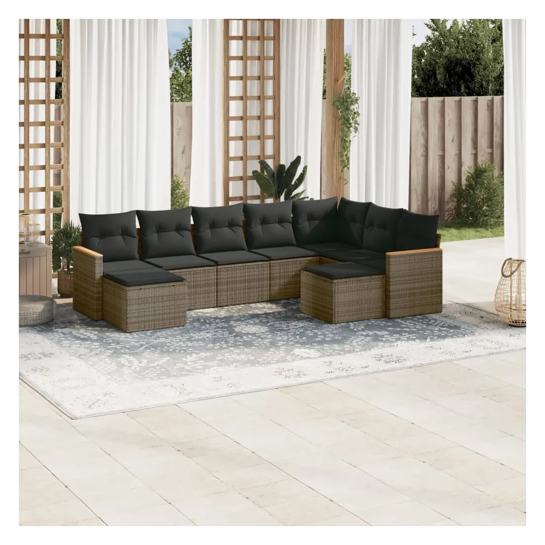 Cet ensemble de canapés de jardin est le complément parfait de votre arrière-cour, terrasse ou patio, offrant un espace confortable et accueillant pour discuter avec la famille et les amis ou simplement se détendre et profiter de l'extérieur. Matériau durable : la résine tressée, également connue sous le nom de poly rotin, est un matériau synthétique solide et nécessitant peu d'entretien qui ressemble au rotin naturel. Il est léger, facile à nettoyer et couramment utilisé pour les meubles d'extérieur en raison de sa durabilité et de ses propriétés de résistance aux intempéries.Housse amovible et lavable : ces coussins de siège sont dotés de housses amovibles pour un lavage et un entretien faciles.Cadre robuste et stable : le cadre en acier enduit de poudre assure la solidité et la stabilité du meuble de jardin pour une utilisation quotidienne à l'extérieur.Conception modulaire : cet ensemble de meubles d'extérieur a une conception modulaire, ce qui le rend complètement flexible et facile à déplacer, afin que vous puissiez créer un agencement de meubles d'extérieur personnalisé. Bon à savoir :Pour que vos meubles d'extérieur restent beaux, nous vous recommandons de les protéger avec une housse imperméable.