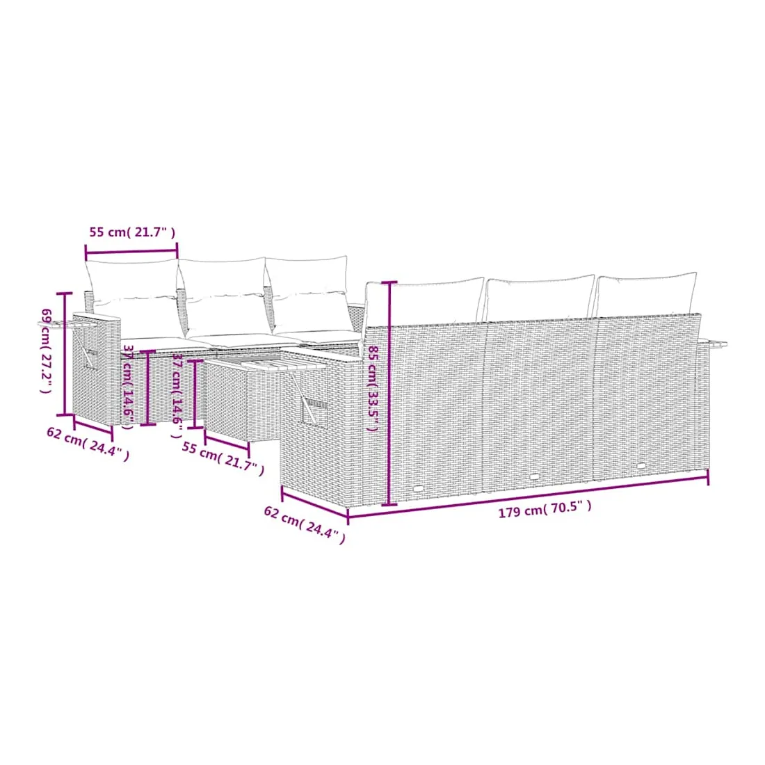 - Dimensions : 55 x 55 x 37 cm (L x l x H)