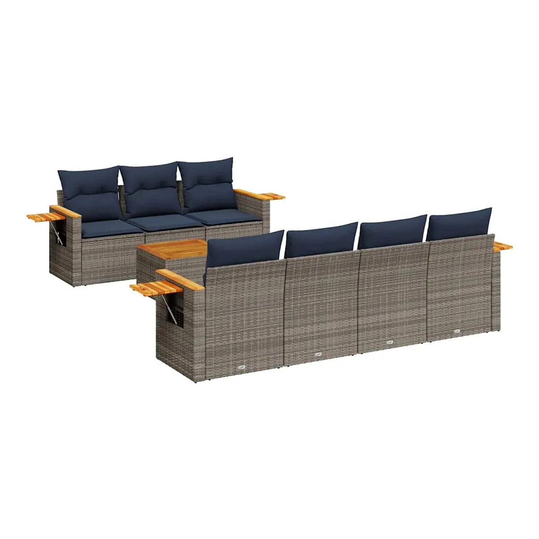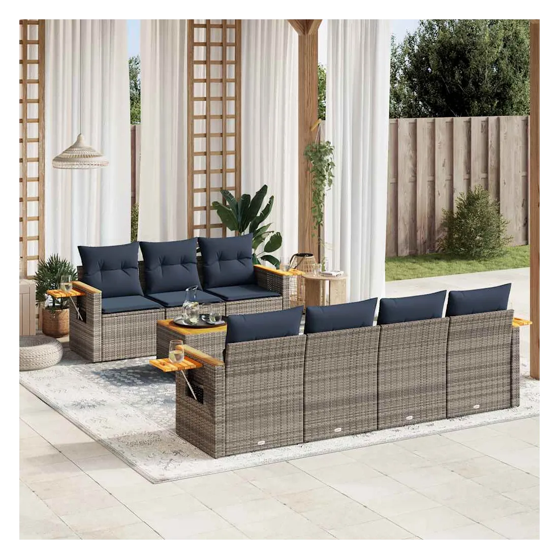 Cet ensemble de canapés de jardin est le complément parfait de votre arrière-cour, terrasse ou patio, offrant un espace confortable et accueillant pour discuter avec la famille et les amis ou simplement se détendre et profiter de l'extérieur. Matériau durable : la résine tressée, également connue sous le nom de poly rotin, est un matériau synthétique solide et nécessitant peu d'entretien qui ressemble au rotin naturel. Il est léger, facile à nettoyer et couramment utilisé pour les meubles d'extérieur en raison de sa durabilité et de ses propriétés de résistance aux intempéries.Dessus stable et facile à nettoyer : cette table de jardin a un dessus en bois d'acacia robuste, durable et facile à nettoyer avec un chiffon humide.Table d'appoint pratique : ce mobilier d'extérieur comprend une table d'appoint pliable avec un ressort à gaz sur les accoudoirs, offrant un endroit pratique pour garder vos essentiels à portée de main.Housse amovible et lavable : ces coussins de siège sont dotés de housses amovibles pour un lavage et un entretien faciles.Conception modulaire : cet ensemble de meubles d'extérieur a une conception modulaire, ce qui le rend complètement flexible et facile à déplacer, afin que vous puissiez créer un agencement de meubles d'extérieur personnalisé. Bon à savoir :Pour que vos meubles d'extérieur restent beaux, nous vous recommandons de les protéger avec une housse imperméable.