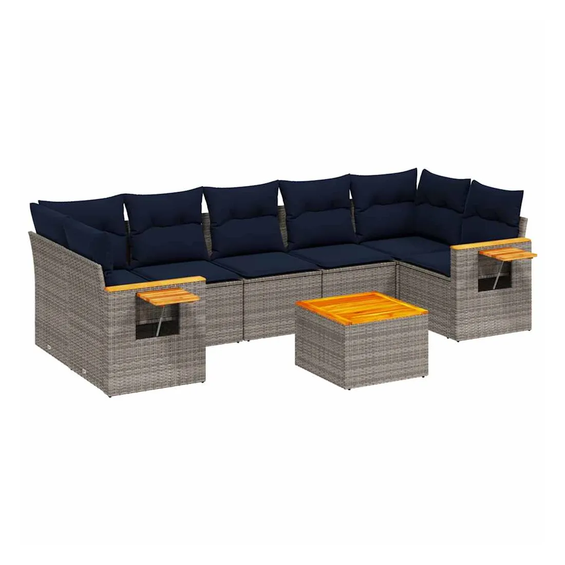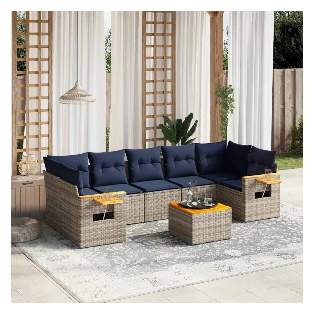 Cet ensemble de canapés de jardin est le complément parfait de votre arrière-cour, terrasse ou patio, offrant un espace confortable et accueillant pour discuter avec la famille et les amis ou simplement se détendre et profiter de l'extérieur. Matériau durable : la résine tressée, également connue sous le nom de poly rotin, est un matériau synthétique solide et nécessitant peu d'entretien qui ressemble au rotin naturel. Il est léger, facile à nettoyer et couramment utilisé pour les meubles d'extérieur en raison de sa durabilité et de ses propriétés de résistance aux intempéries.Dessus stable et facile à nettoyer : cette table de jardin a un dessus en bois d'acacia robuste, durable et facile à nettoyer avec un chiffon humide.Table d'appoint pratique : ce mobilier d'extérieur comprend une table d'appoint pliable avec un ressort à gaz sur les accoudoirs, offrant un endroit pratique pour garder vos essentiels à portée de main.Housse amovible et lavable : ces coussins de siège sont dotés de housses amovibles pour un lavage et un entretien faciles.Conception modulaire : cet ensemble de meubles d'extérieur a une conception modulaire, ce qui le rend complètement flexible et facile à déplacer, afin que vous puissiez créer un agencement de meubles d'extérieur personnalisé. Bon à savoir :Pour que vos meubles d'extérieur restent beaux, nous vous recommandons de les protéger avec une housse imperméable.