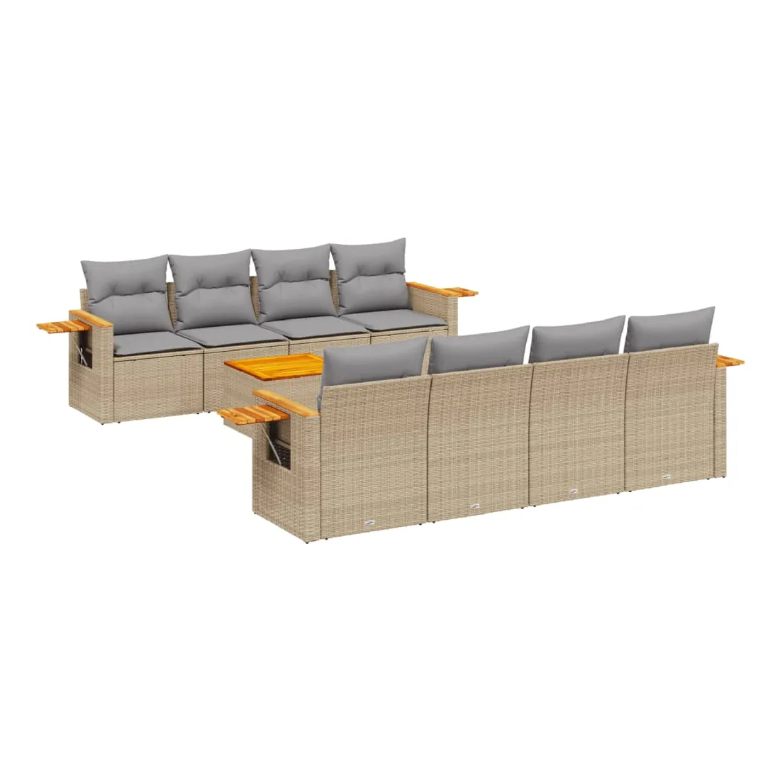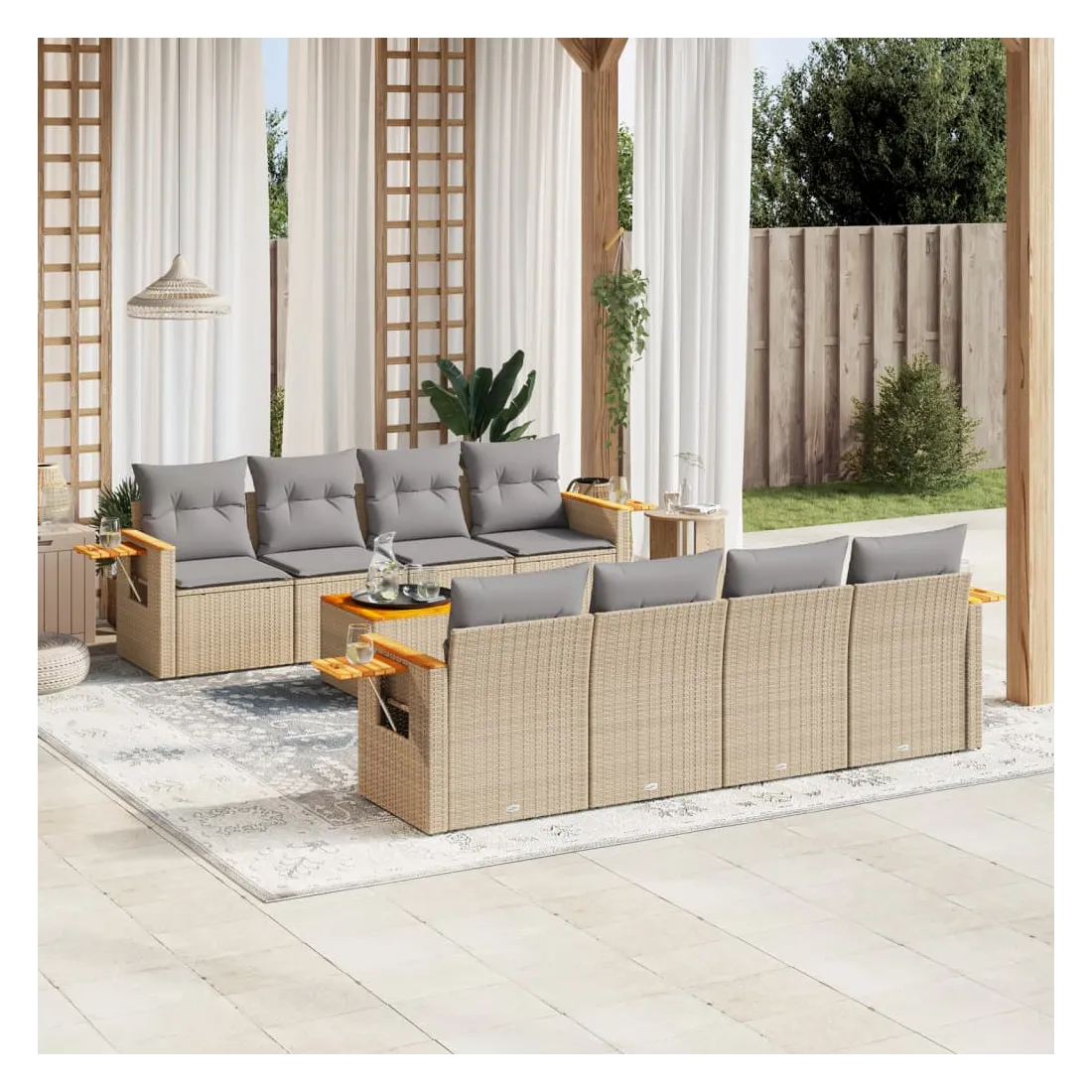 Cet ensemble de canapés de jardin est le complément parfait de votre arrière-cour, terrasse ou patio, offrant un espace confortable et accueillant pour discuter avec la famille et les amis ou simplement se détendre et profiter de l'extérieur. Matériau durable : la résine tressée, également connue sous le nom de poly rotin, est un matériau synthétique solide et nécessitant peu d'entretien qui ressemble au rotin naturel. Il est léger, facile à nettoyer et couramment utilisé pour les meubles d'extérieur en raison de sa durabilité et de ses propriétés de résistance aux intempéries.Dessus stable et facile à nettoyer : cette table de jardin a un dessus en bois d'acacia robuste, durable et facile à nettoyer avec un chiffon humide.Table d'appoint pratique : ce mobilier d'extérieur comprend une table d'appoint pliable avec un ressort à gaz sur les accoudoirs, offrant un endroit pratique pour garder vos essentiels à portée de main.Housse amovible et lavable : ces coussins de siège sont dotés de housses amovibles pour un lavage et un entretien faciles.Conception modulaire : cet ensemble de meubles d'extérieur a une conception modulaire, ce qui le rend complètement flexible et facile à déplacer, afin que vous puissiez créer un agencement de meubles d'extérieur personnalisé. Bon à savoir :Pour que vos meubles d'extérieur restent beaux, nous vous recommandons de les protéger avec une housse imperméable.