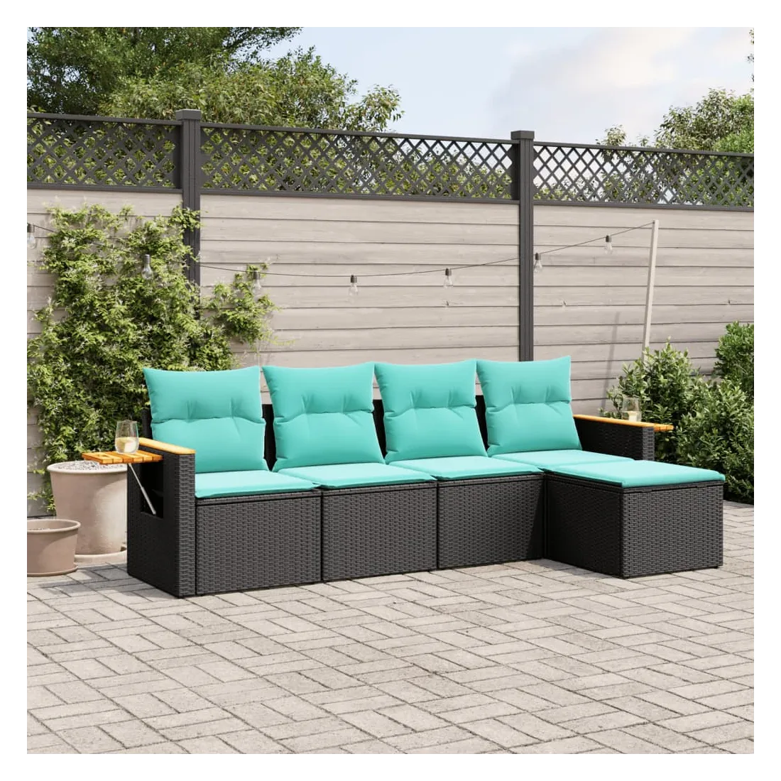 - Matériau : résine tressée, acier enduit de poudre, bois d'acacia massif avec finition à l'huile