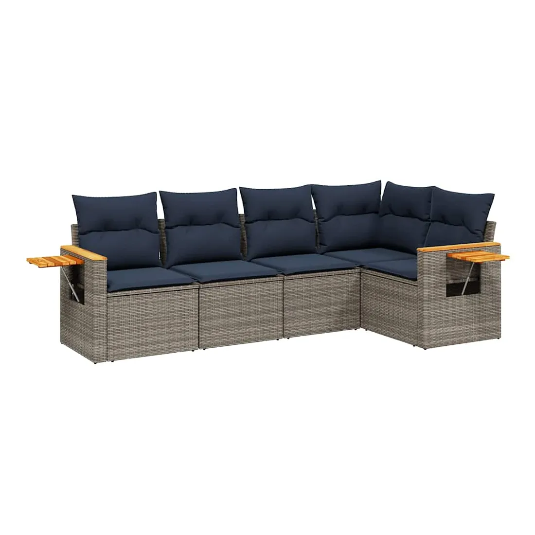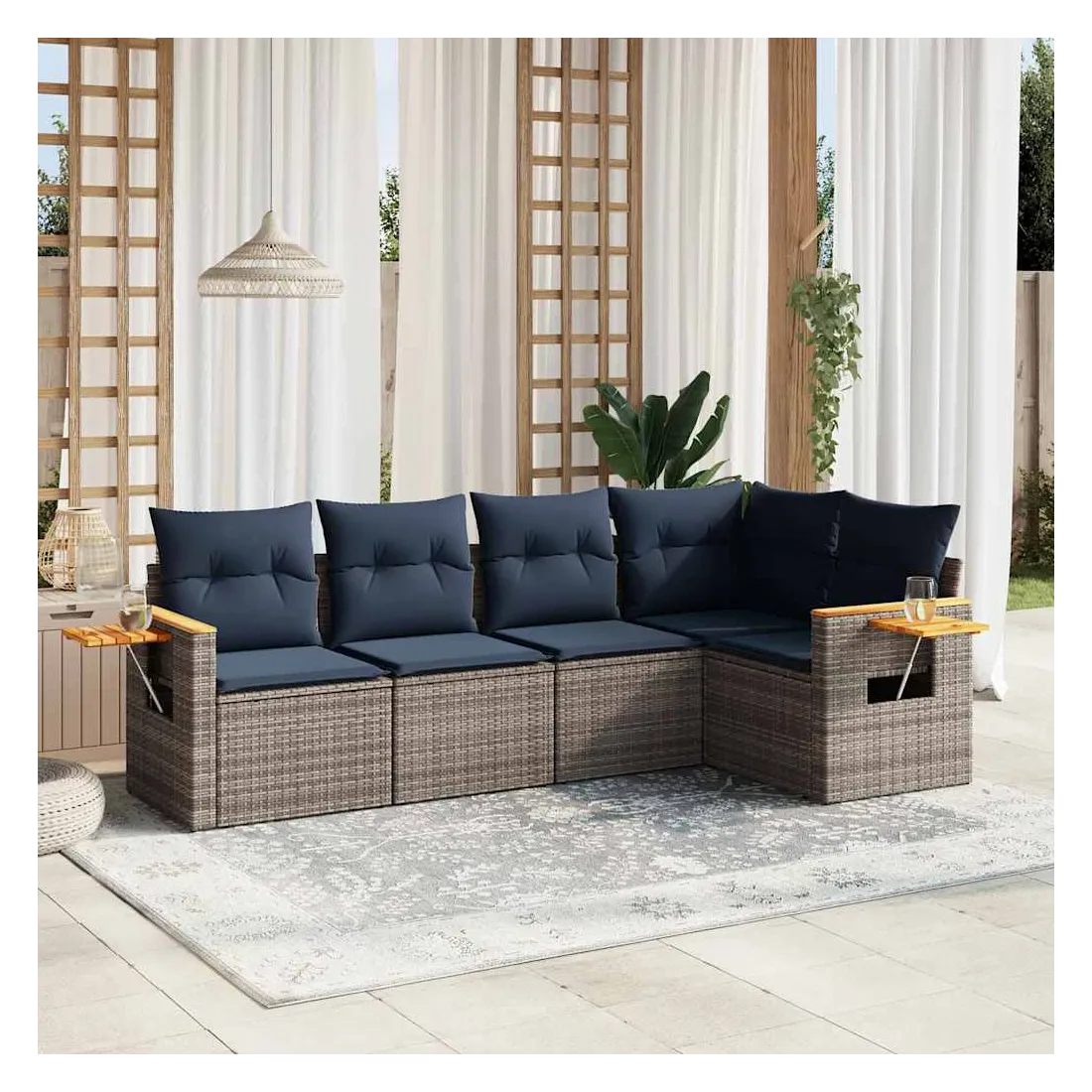 Salon de jardin 5 pcs avec coussins gris résine tressée