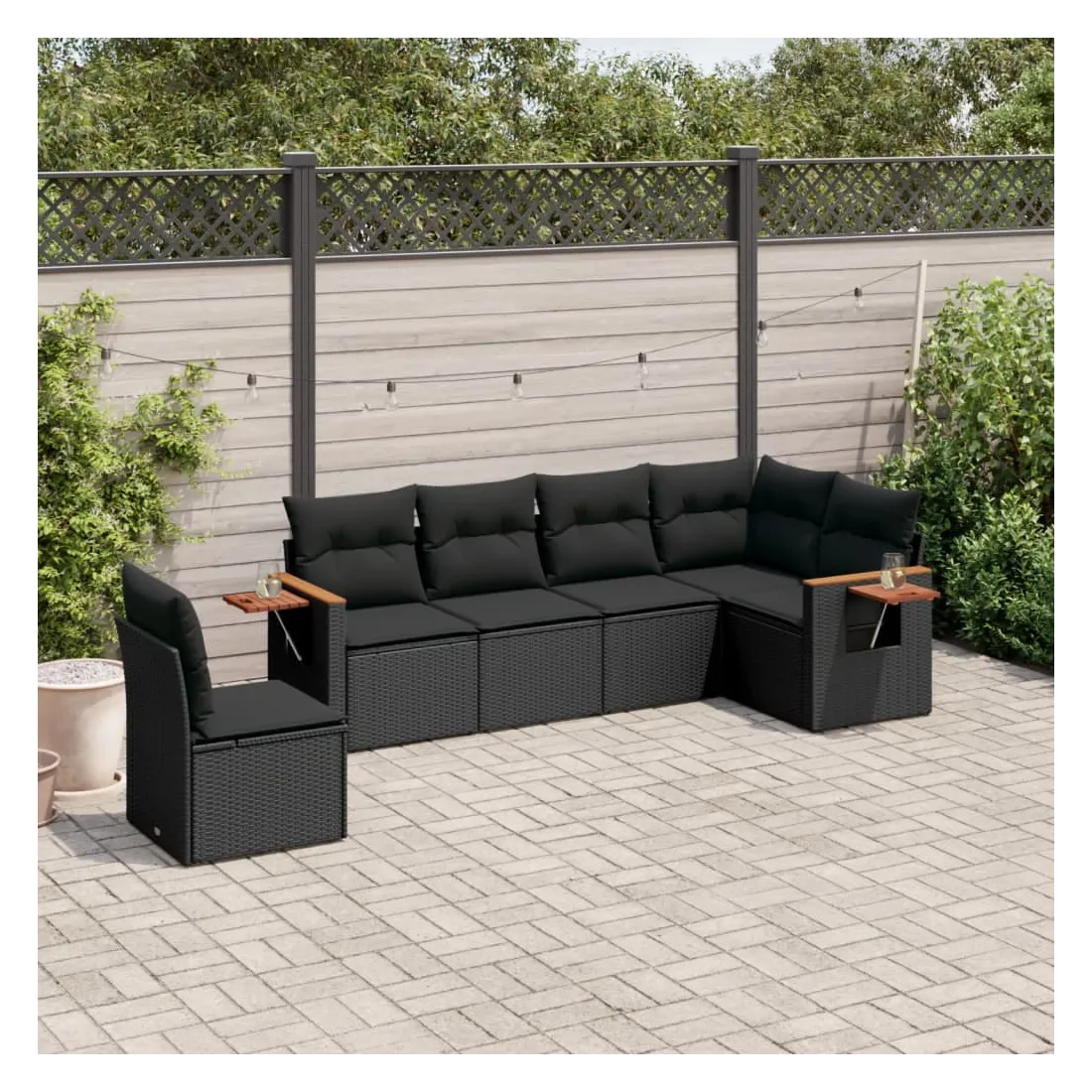 Cet ensemble de canapés de jardin est le complément parfait de votre arrière-cour, terrasse ou patio, offrant un espace confortable et accueillant pour discuter avec la famille et les amis ou simplement se détendre et profiter de l'extérieur. Matériau durable : la résine tressée, également connue sous le nom de poly rotin, est un matériau synthétique solide et nécessitant peu d'entretien qui ressemble au rotin naturel. Il est léger, facile à nettoyer et couramment utilisé pour les meubles d'extérieur en raison de sa durabilité et de ses propriétés de résistance aux intempéries.Table d'appoint pratique : ce mobilier d'extérieur comprend une table d'appoint pliable avec un ressort à gaz sur les accoudoirs, offrant un endroit pratique pour garder vos essentiels à portée de main.Housse amovible et lavable : ces coussins de siège sont dotés de housses amovibles pour un lavage et un entretien faciles.Conception modulaire : cet ensemble de meubles d'extérieur a une conception modulaire, ce qui le rend complètement flexible et facile à déplacer, afin que vous puissiez créer un agencement de meubles d'extérieur personnalisé. Bon à savoir :Pour que vos meubles d'extérieur restent beaux, nous vous recommandons de les protéger avec une housse imperméable.