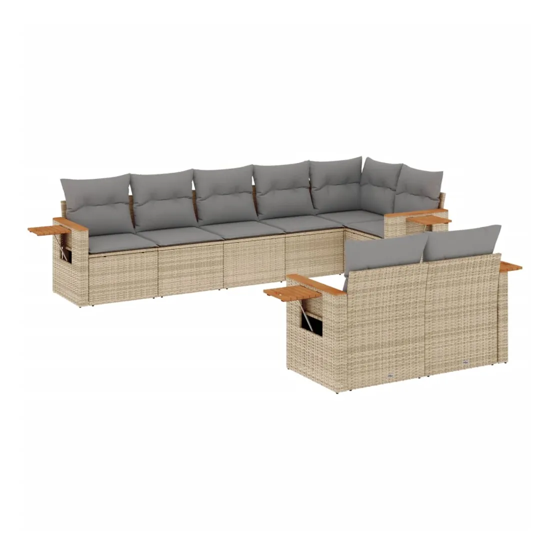 Cet ensemble de canapés de jardin est le complément parfait de votre arrière-cour, terrasse ou patio, offrant un espace confortable et accueillant pour discuter avec la famille et les amis ou simplement se détendre et profiter de l'extérieur. Matériau durable : la résine tressée, également connue sous le nom de poly rotin, est un matériau synthétique solide et nécessitant peu d'entretien qui ressemble au rotin naturel. Il est léger, facile à nettoyer et couramment utilisé pour les meubles d'extérieur en raison de sa durabilité et de ses propriétés de résistance aux intempéries.Table d'appoint pratique : ce mobilier d'extérieur comprend une table d'appoint pliable avec un ressort à gaz sur les accoudoirs, offrant un endroit pratique pour garder vos essentiels à portée de main.Housse amovible et lavable : ces coussins de siège sont dotés de housses amovibles pour un lavage et un entretien faciles.Conception modulaire : cet ensemble de meubles d'extérieur a une conception modulaire, ce qui le rend complètement flexible et facile à déplacer, afin que vous puissiez créer un agencement de meubles d'extérieur personnalisé. Bon à savoir :Pour que vos meubles d'extérieur restent beaux, nous vous recommandons de les protéger avec une housse imperméable.