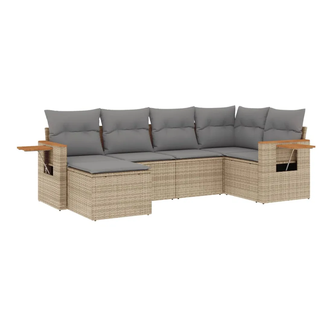 Cet ensemble de canapés de jardin est le complément parfait de votre arrière-cour, terrasse ou patio, offrant un espace confortable et accueillant pour discuter avec la famille et les amis ou simplement se détendre et profiter de l'extérieur. Matériau durable : la résine tressée, également connue sous le nom de poly rotin, est un matériau synthétique solide et nécessitant peu d'entretien qui ressemble au rotin naturel. Il est léger, facile à nettoyer et couramment utilisé pour les meubles d'extérieur en raison de sa durabilité et de ses propriétés de résistance aux intempéries.Table d'appoint pratique : ce mobilier d'extérieur comprend une table d'appoint pliable avec un ressort à gaz sur les accoudoirs, offrant un endroit pratique pour garder vos essentiels à portée de main.Housse amovible et lavable : ces coussins de siège sont dotés de housses amovibles pour un lavage et un entretien faciles.Conception modulaire : cet ensemble de meubles d'extérieur a une conception modulaire, ce qui le rend complètement flexible et facile à déplacer, afin que vous puissiez créer un agencement de meubles d'extérieur personnalisé. Bon à savoir :Pour que vos meubles d'extérieur restent beaux, nous vous recommandons de les protéger avec une housse imperméable.