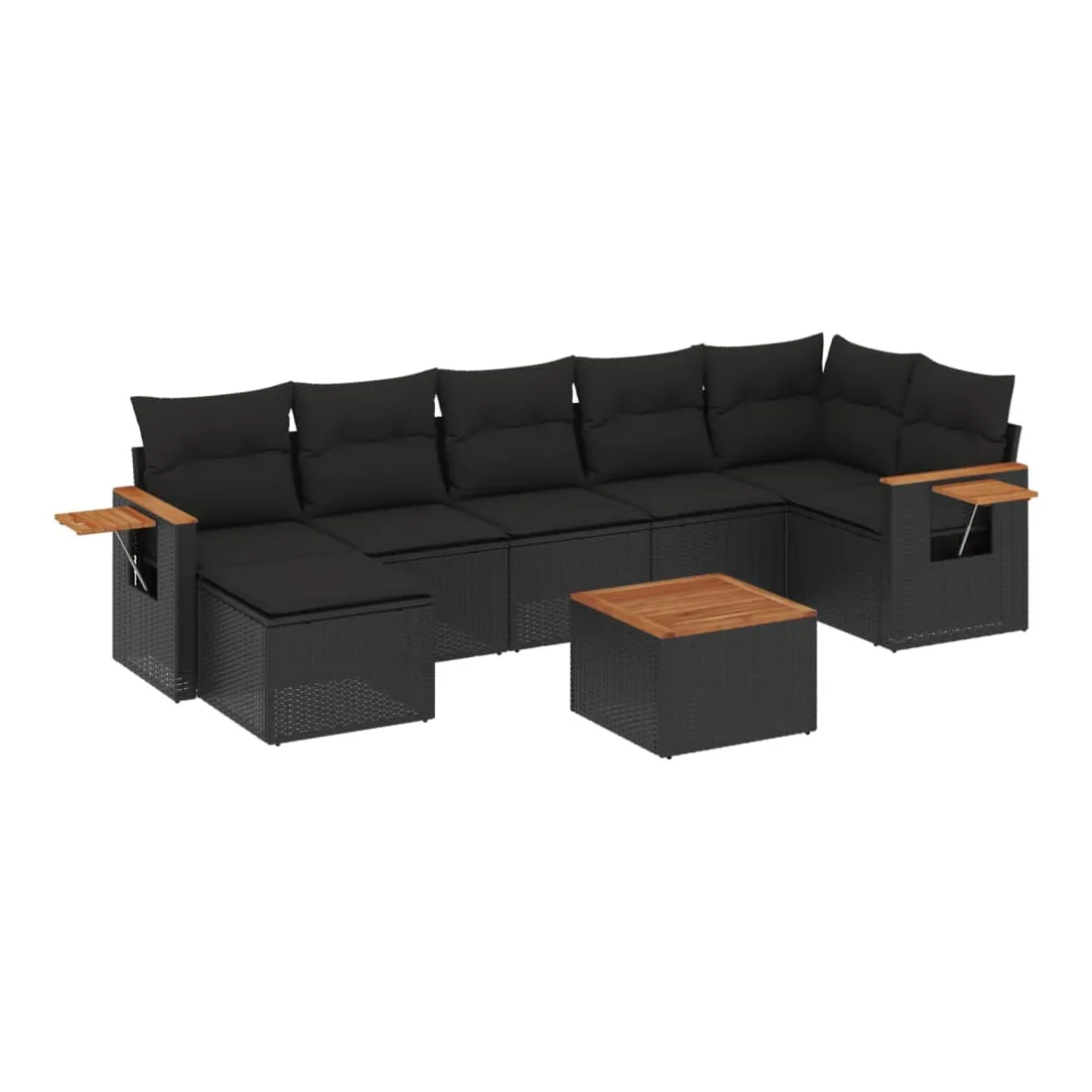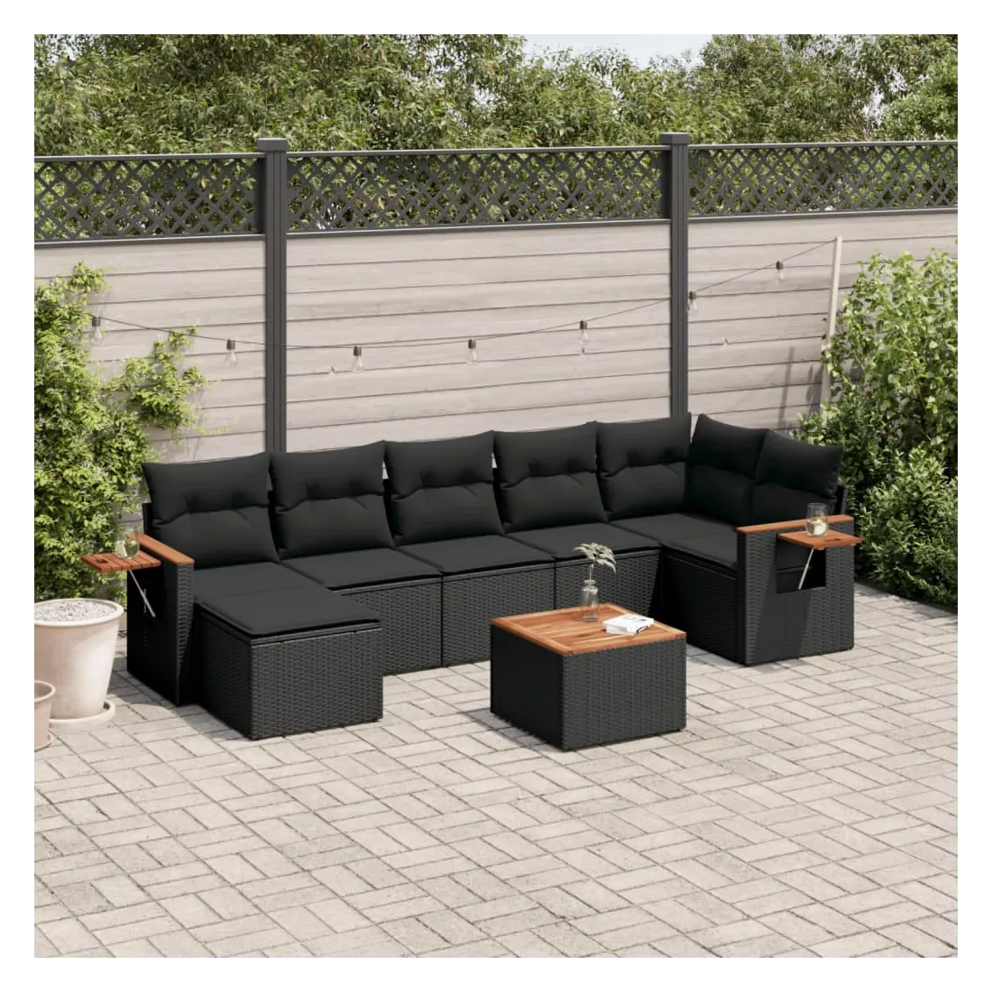 Cet ensemble de canapés de jardin est le complément parfait de votre arrière-cour, terrasse ou patio, offrant un espace confortable et accueillant pour discuter avec la famille et les amis ou simplement se détendre et profiter de l'extérieur. Matériau durable : la résine tressée, également connue sous le nom de poly rotin, est un matériau synthétique solide et nécessitant peu d'entretien qui ressemble au rotin naturel. Il est léger, facile à nettoyer et couramment utilisé pour les meubles d'extérieur en raison de sa durabilité et de ses propriétés de résistance aux intempéries.Dessus stable et facile à nettoyer : cette table de jardin a un dessus en bois d'acacia robuste, durable et facile à nettoyer avec un chiffon humide.Table d'appoint pratique : ce mobilier d'extérieur comprend une table d'appoint pliable avec un ressort à gaz sur les accoudoirs, offrant un endroit pratique pour garder vos essentiels à portée de main.Housse amovible et lavable : ces coussins de siège sont dotés de housses amovibles pour un lavage et un entretien faciles.Conception modulaire : cet ensemble de meubles d'extérieur a une conception modulaire, ce qui le rend complètement flexible et facile à déplacer, afin que vous puissiez créer un agencement de meubles d'extérieur personnalisé. Bon à savoir :Pour que vos meubles d'extérieur restent beaux, nous vous recommandons de les protéger avec une housse imperméable.